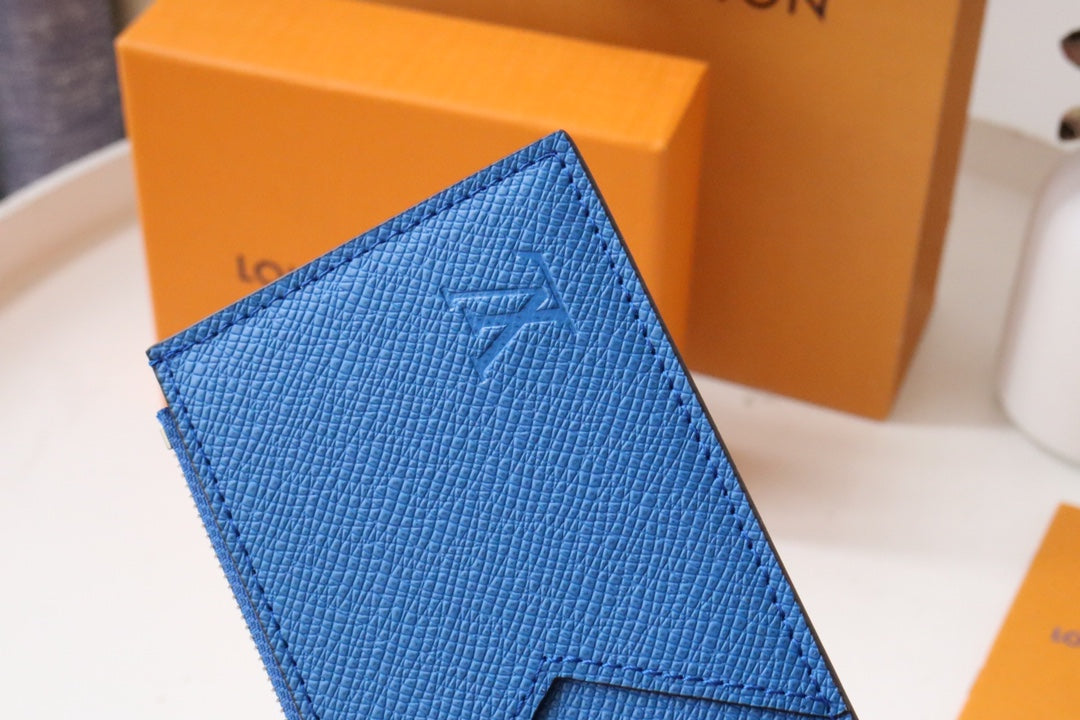 LV Marco Coin Card Holder Blue Gray Taiga Leather 182788