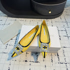 Hangisi 10mm Ballet Flat Yellow Linen with Black Leather Jewel Buckle 161061