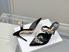 Manolo Flats Mules Crystal Black Silk Satin 327467