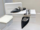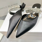Manolo Flats Mules Diamond Buckle Black Silk Satin 327485