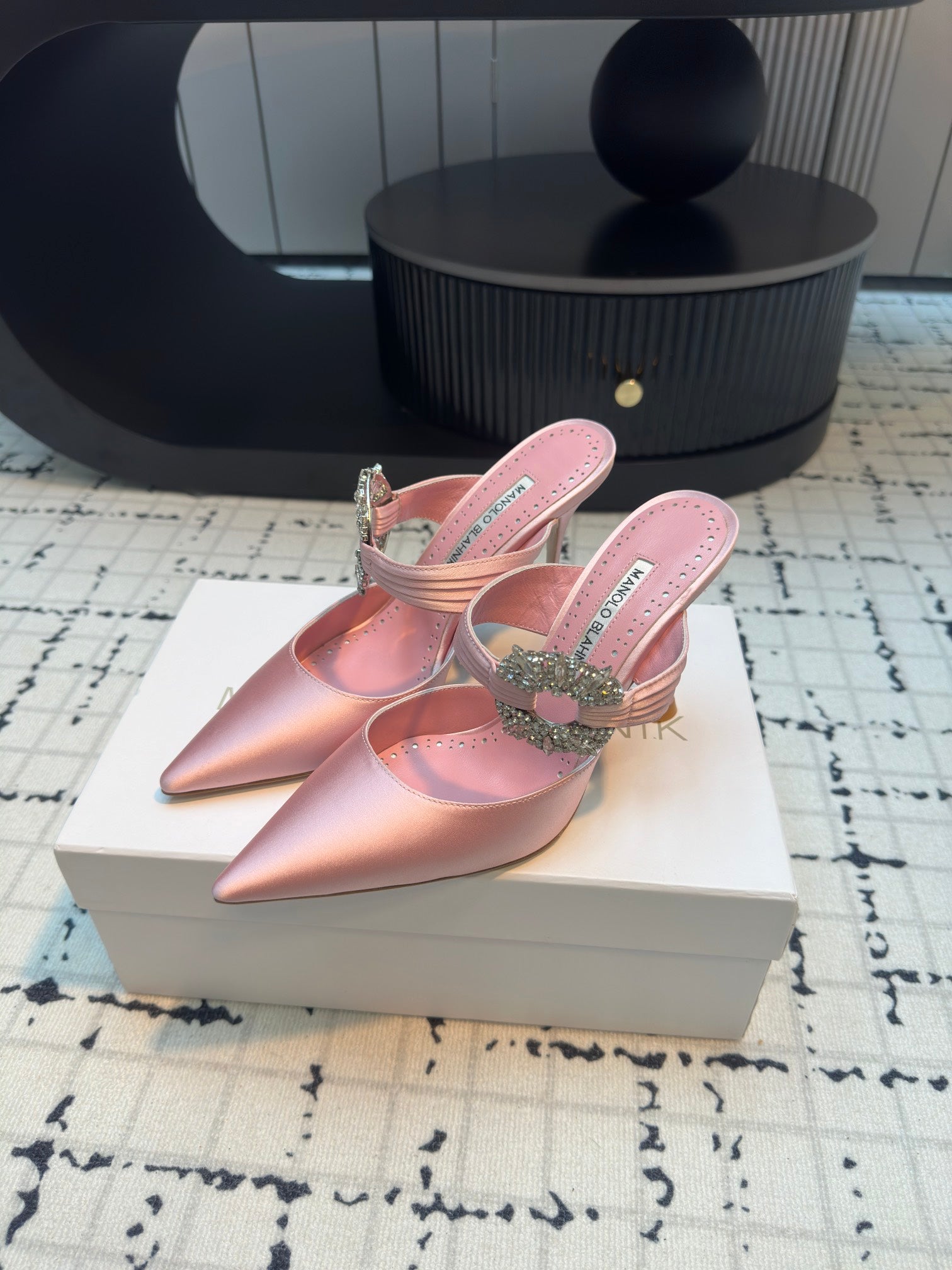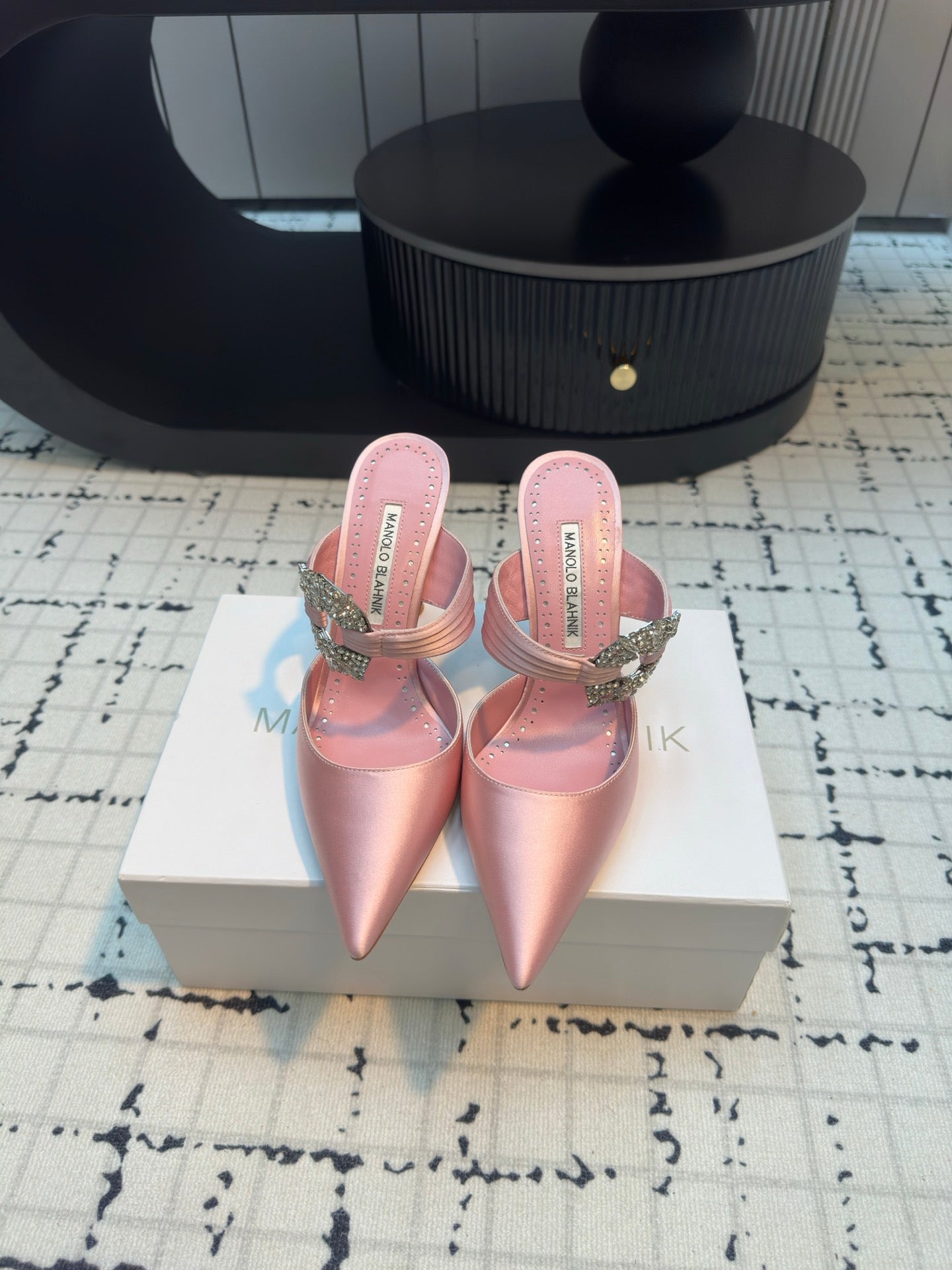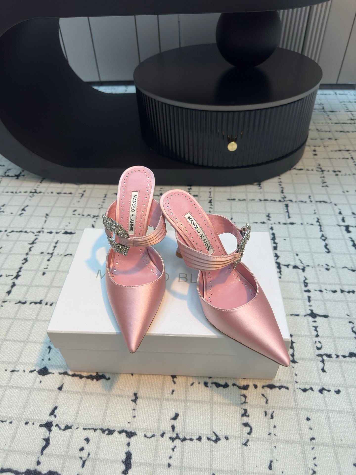 Manolo Satin Maidugura Mules 90mm Pink Satin