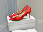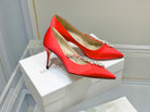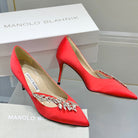Manolo Wheat Ear Rhinestone High Heels Pumps Red Silk Fabric 327448