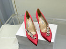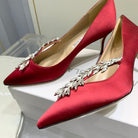 Manolo Wheat Ear Rhinestone Pumps Dark Red Silk Fabric 306595