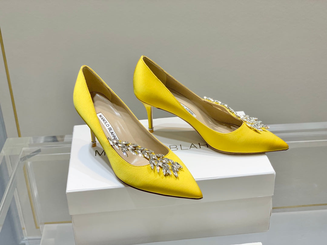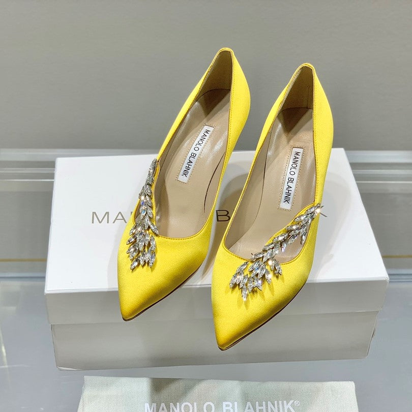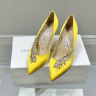 Manolo Women's Nadira Pumps 70 Yellow Satin