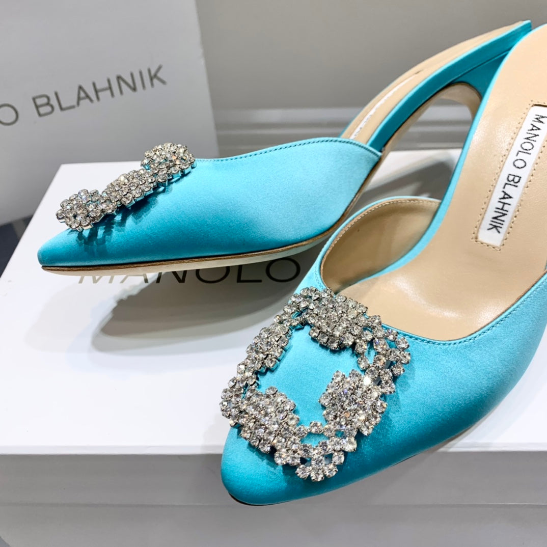 Manolo Diamond Buckle Pumps Electric Silk 327503