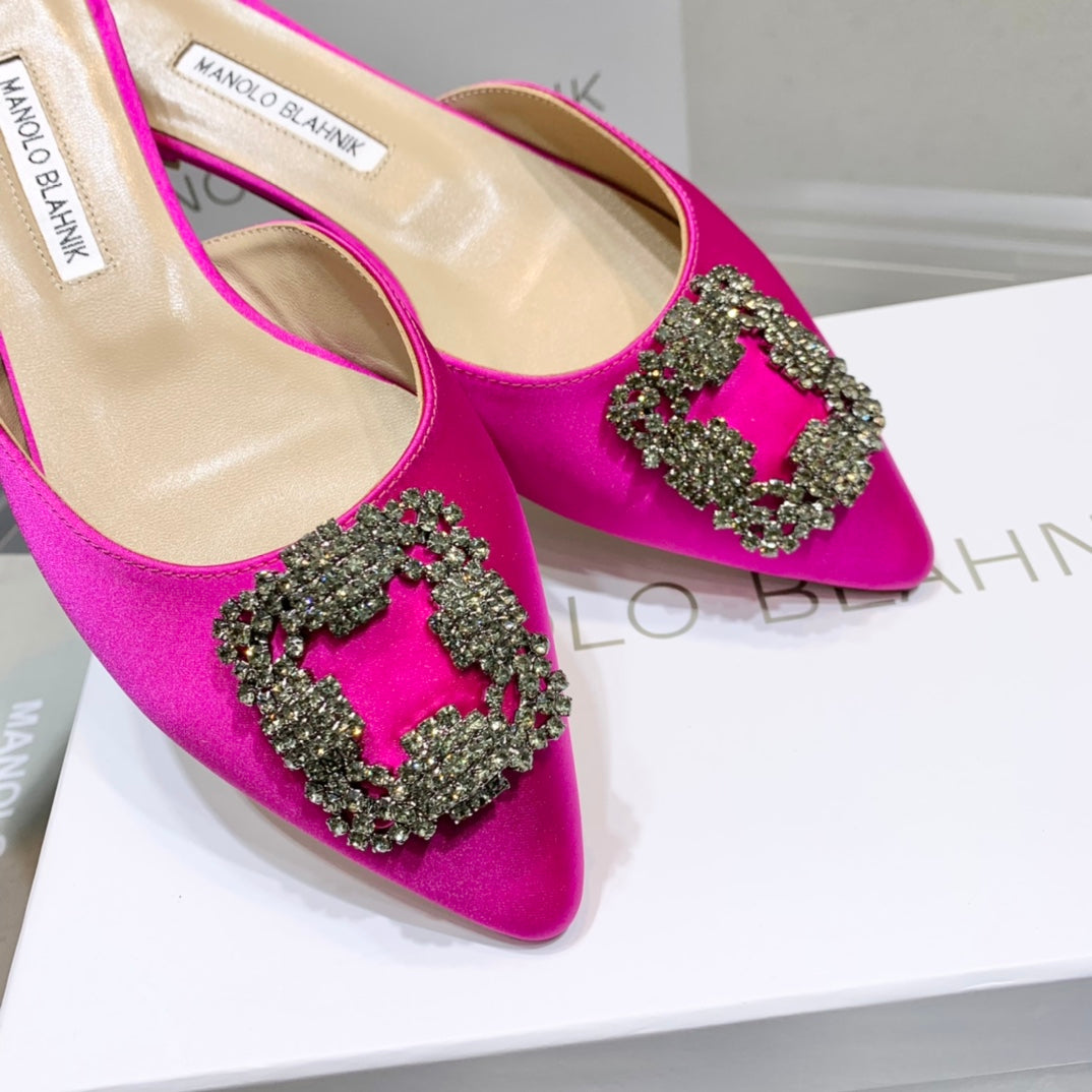 Manolo Buckle Flast Mules Dark Pink Silk 327521