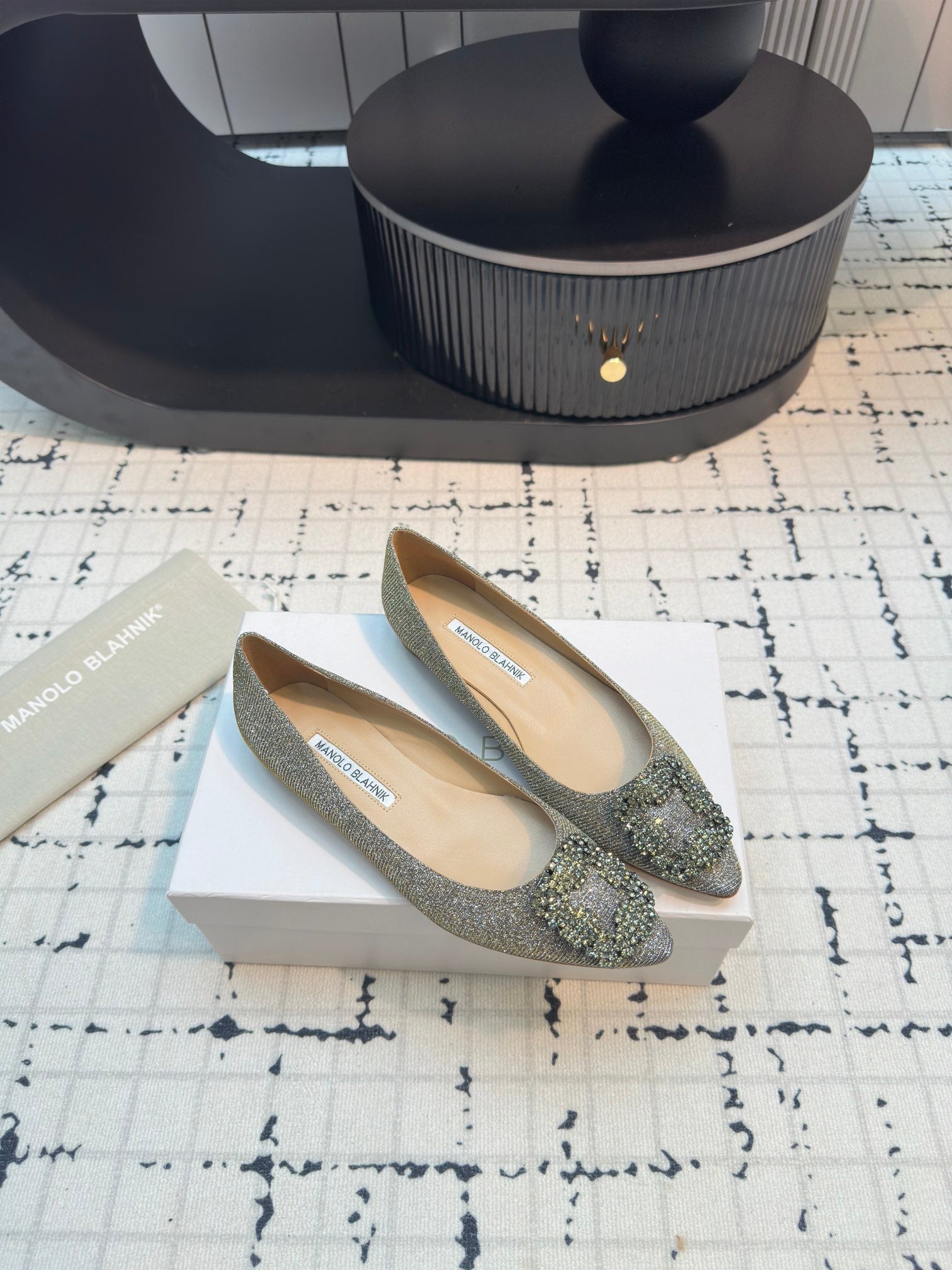 Hangisi 20 Ballet Flat Beige Glitter Fabric Leather Jewel Buckle 912605