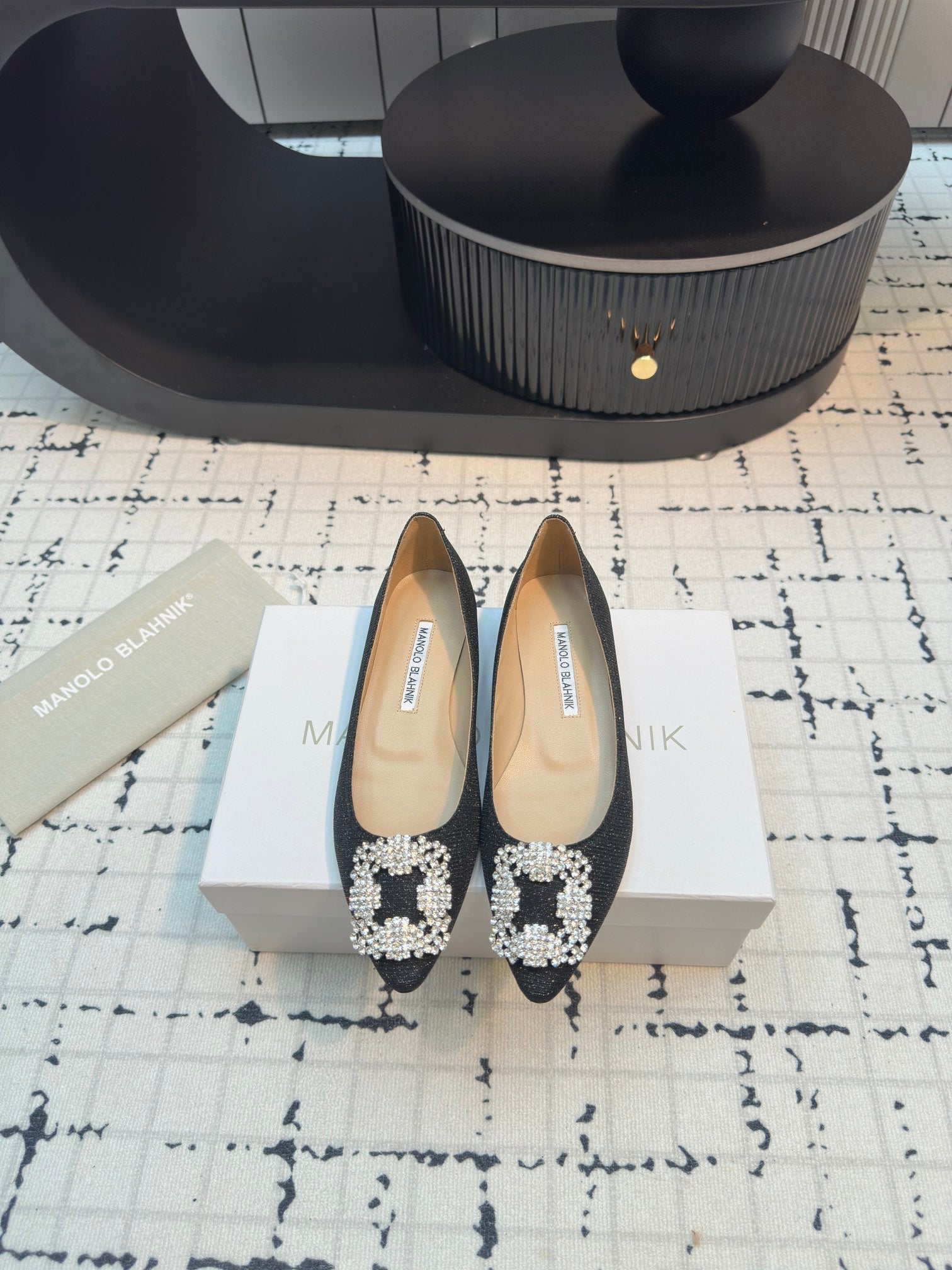 Manolo Hangisi Black Satin Jewel Buckle Pump 95