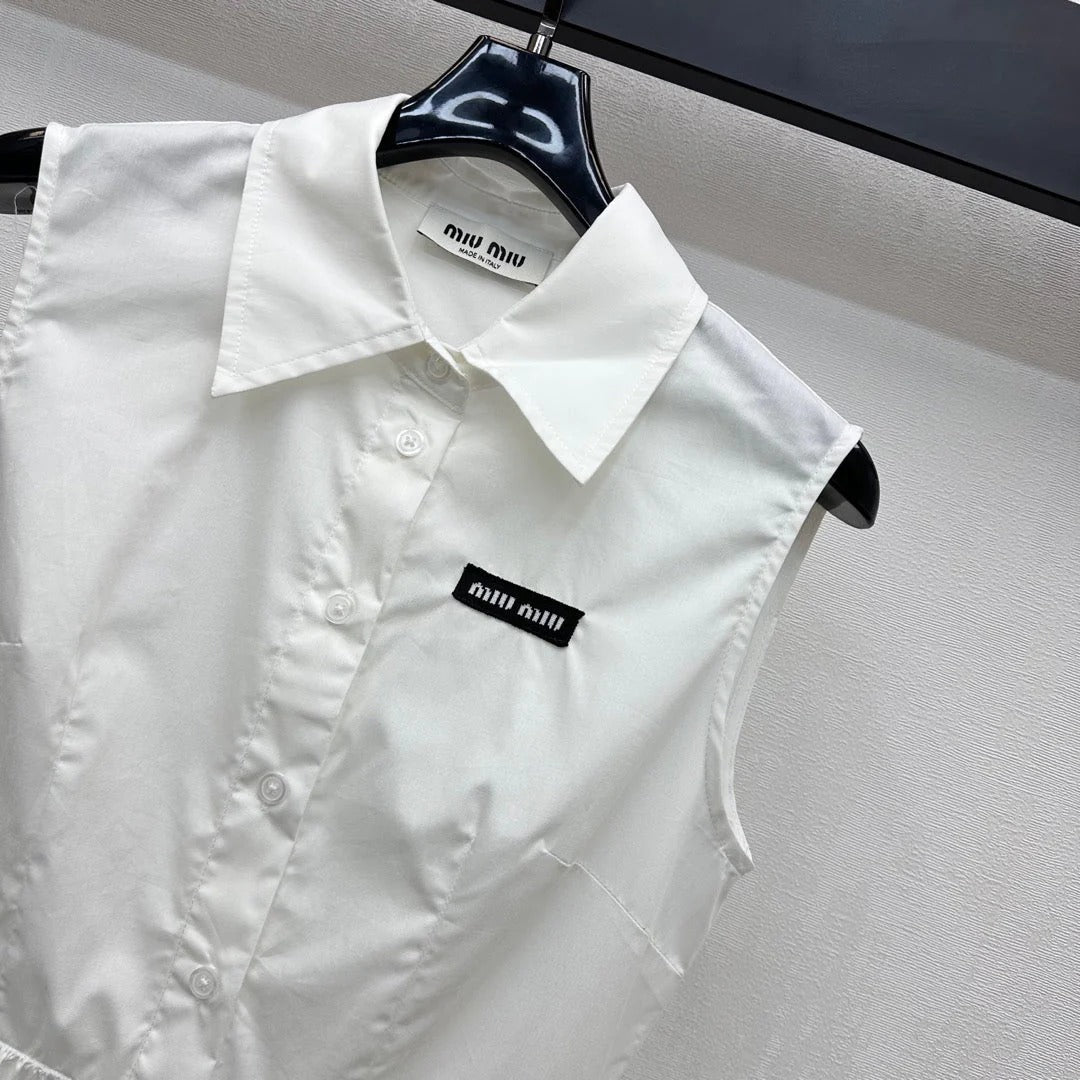 MIU 25S PLEATED VEST DRESS WITH LAPEL COLLAR 264505