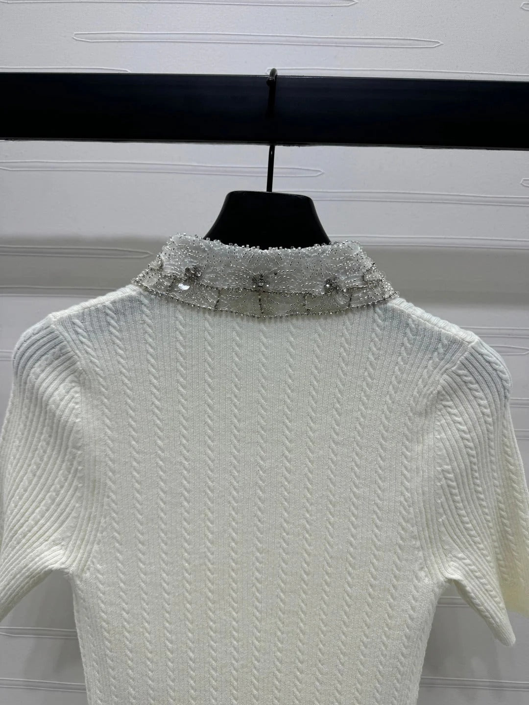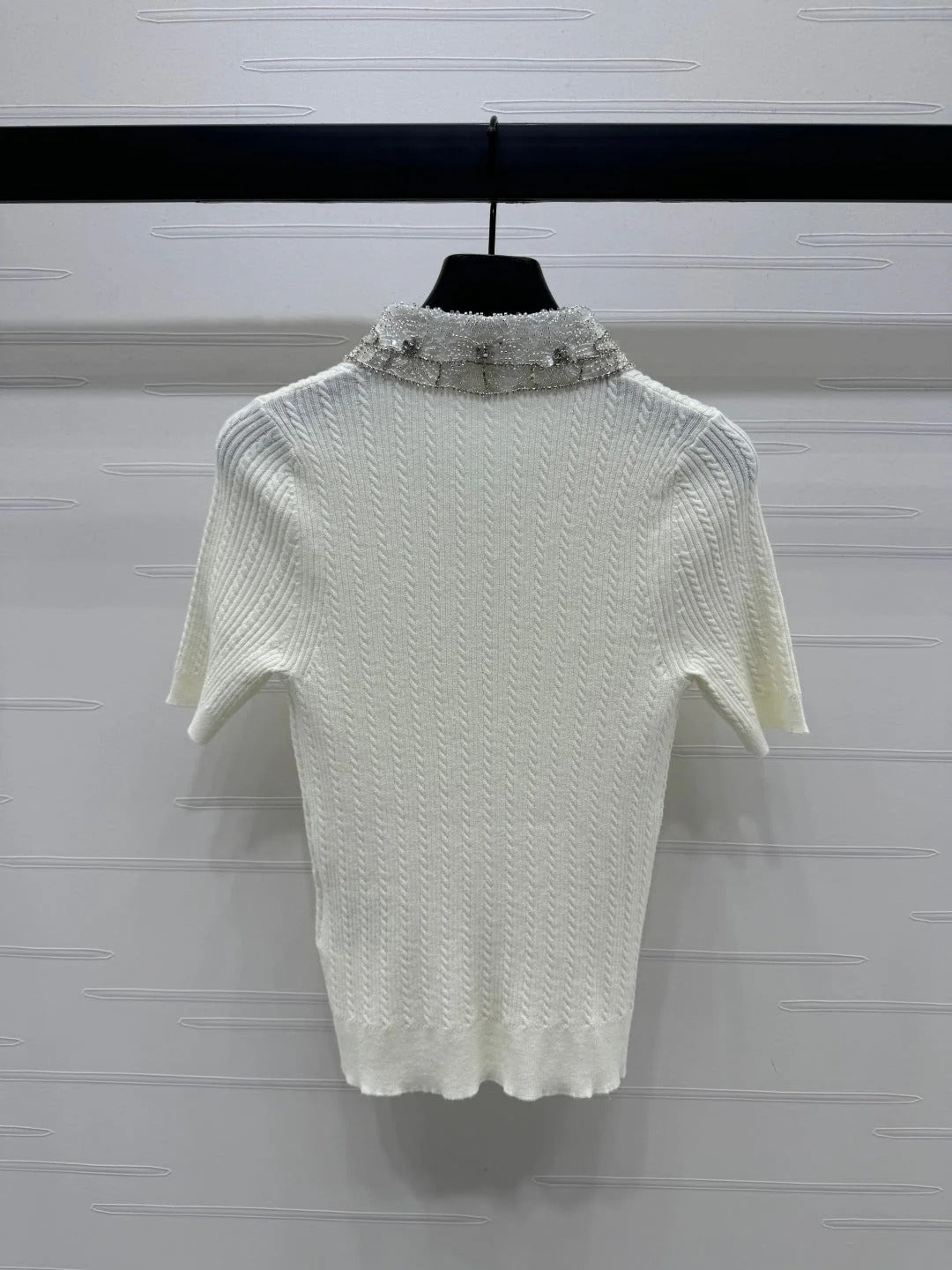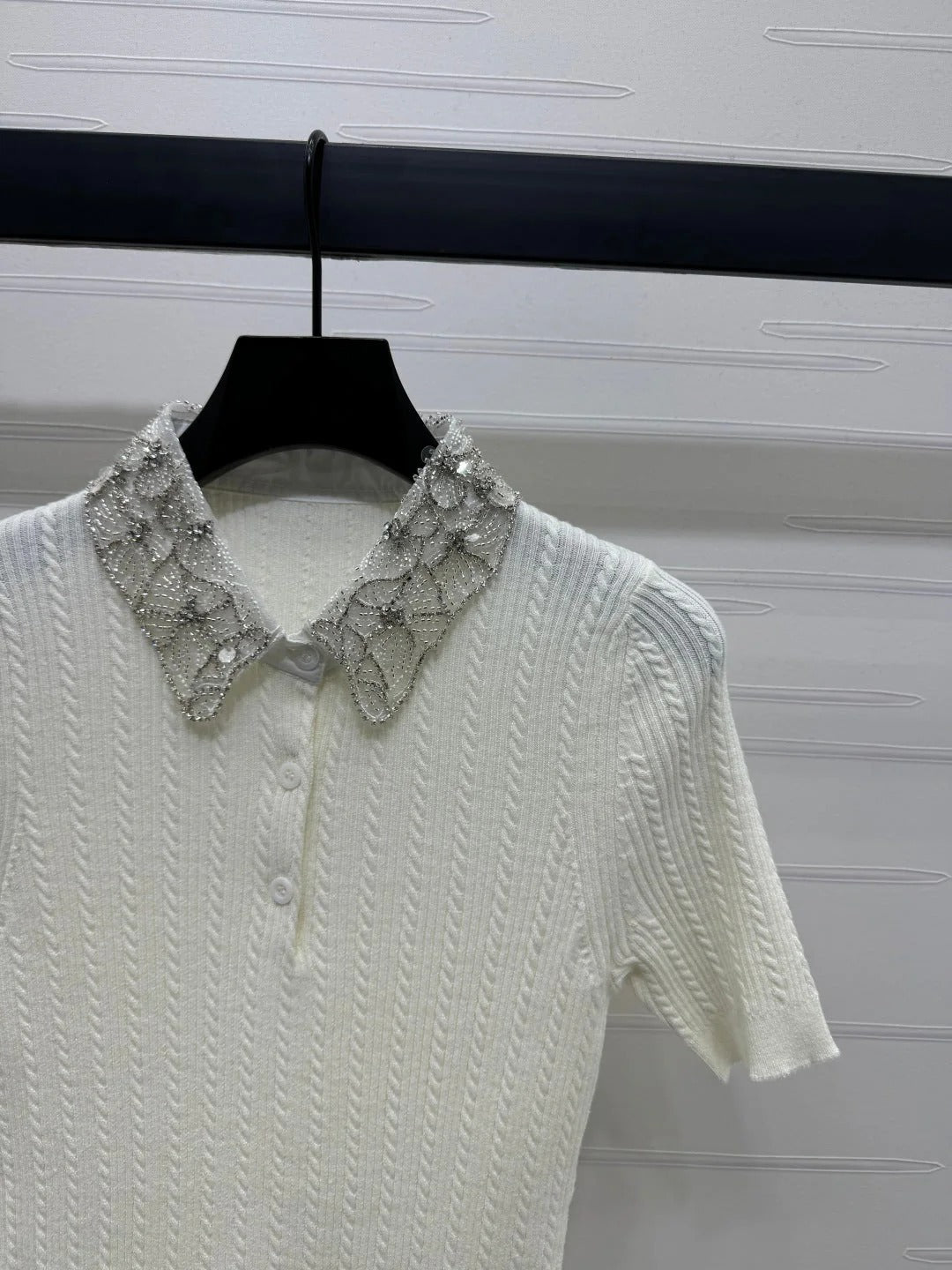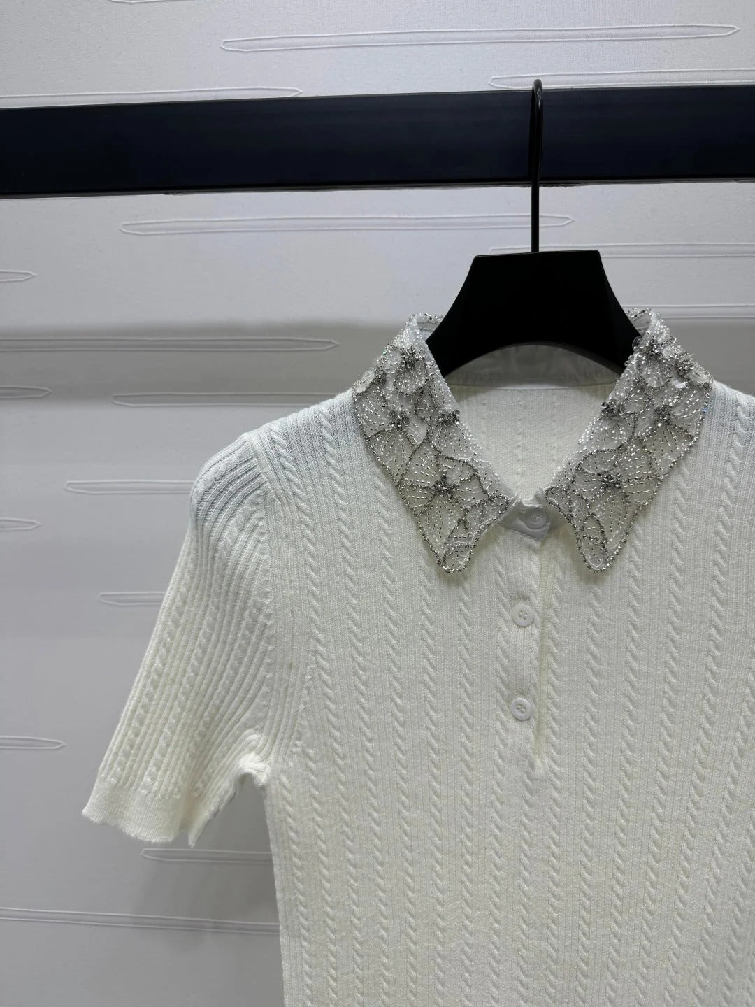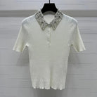 MIU 25S SHORT SLEEVE BEADED COLLAR SHIRT 264247