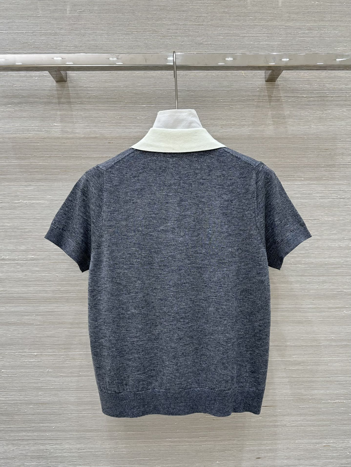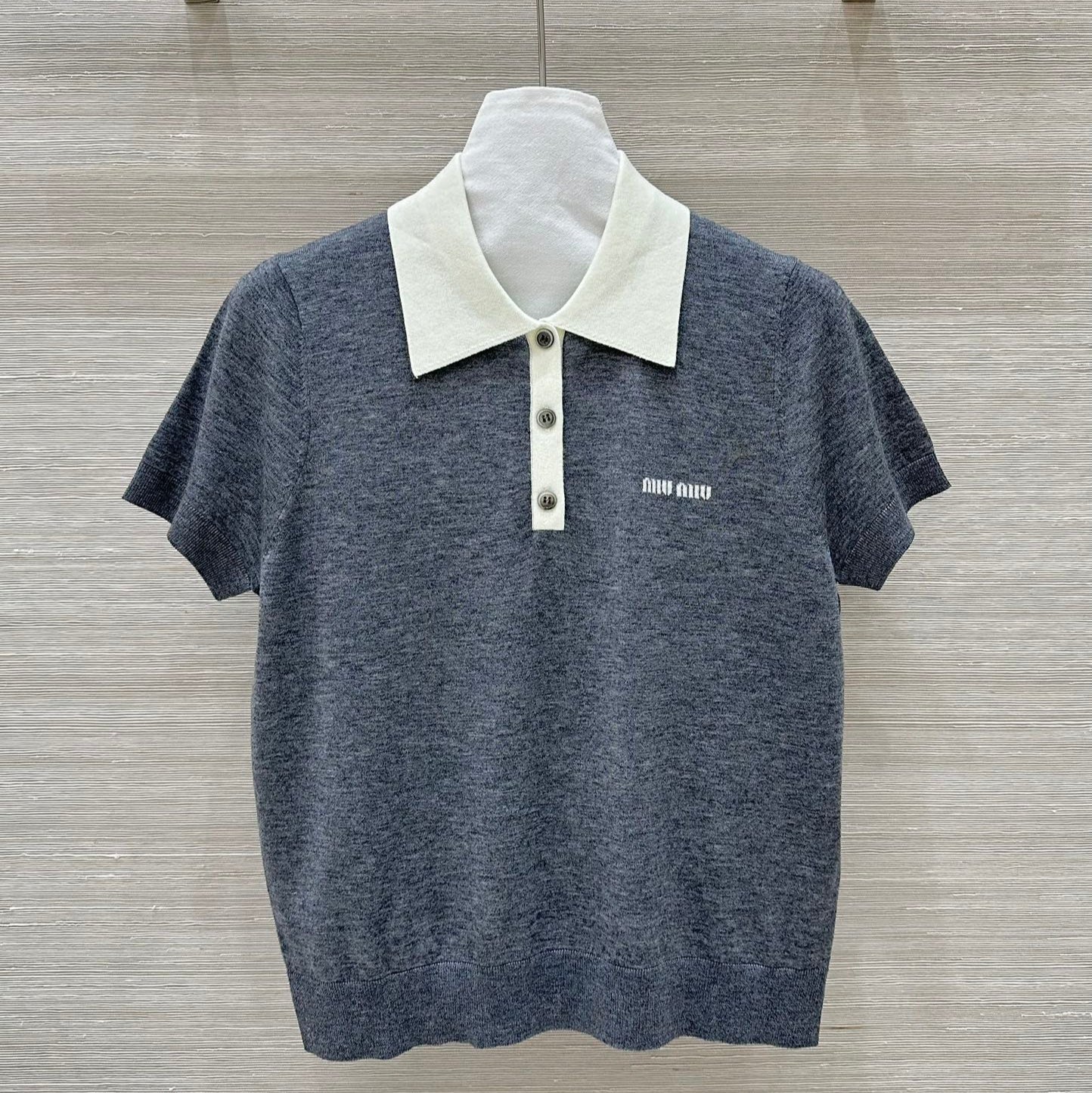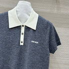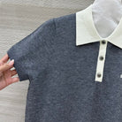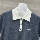 Miu Miu 25 Polo Collar Short-sleeve Knitted Top Gray Wool