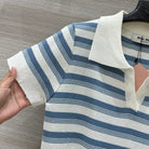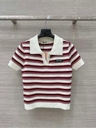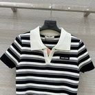 Miu Miu 25 Striped Polo Collar Short-sleeved Top Wool