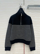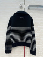 Miu Miu 25 Striped Sweater Navy Blue Cashmere