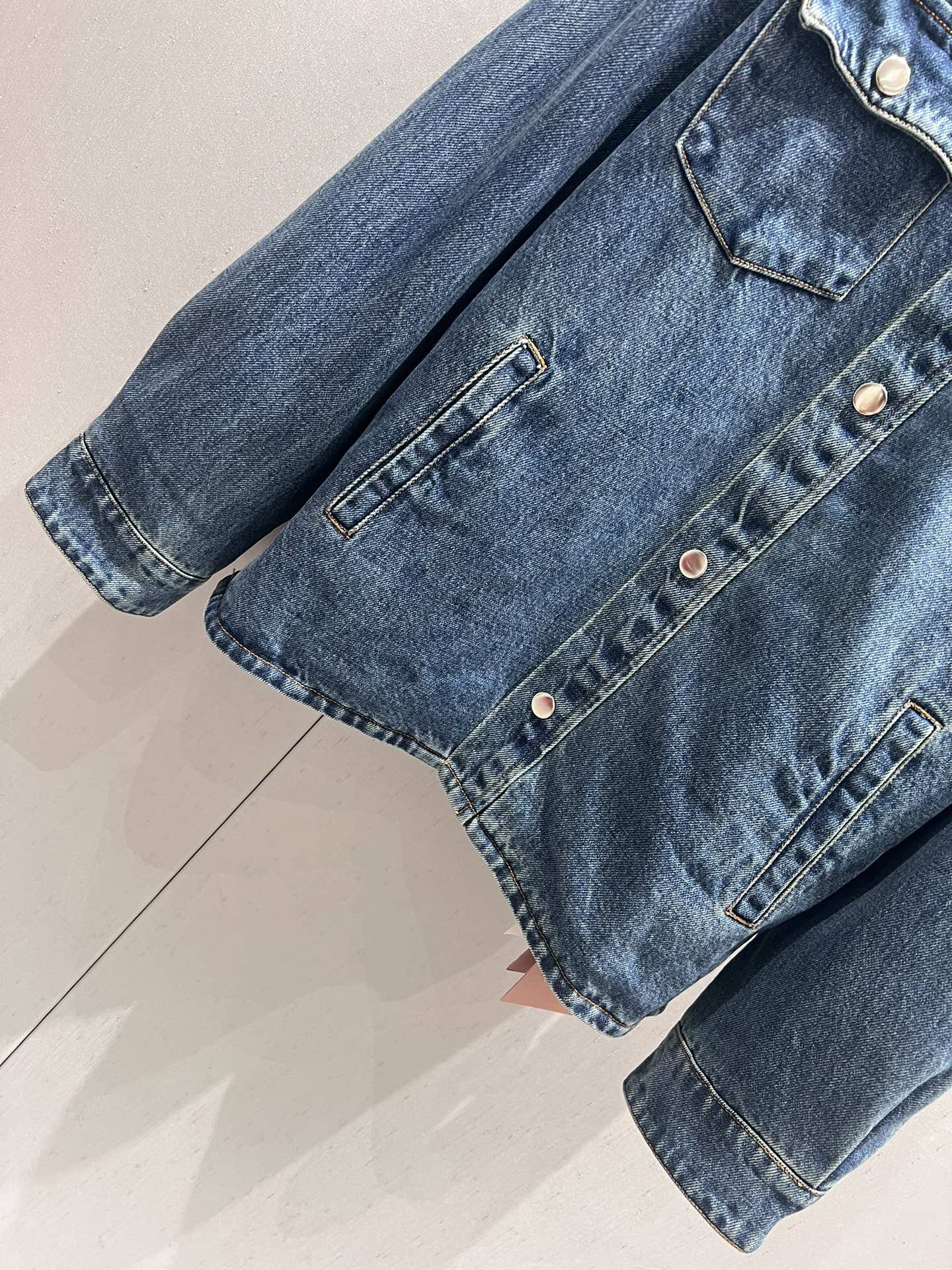 Miu Miu Denim Jacket Blue Brown Cotton 206450