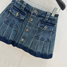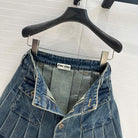 Miu Miu Denim Pleated Short Skirt Blue Cotton