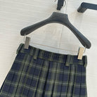 Miu Miu Plaid Pleated Skirt Green Blue Wool