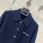 Miu Miu Polo Collar Cardigan Navy Blue Cashmere