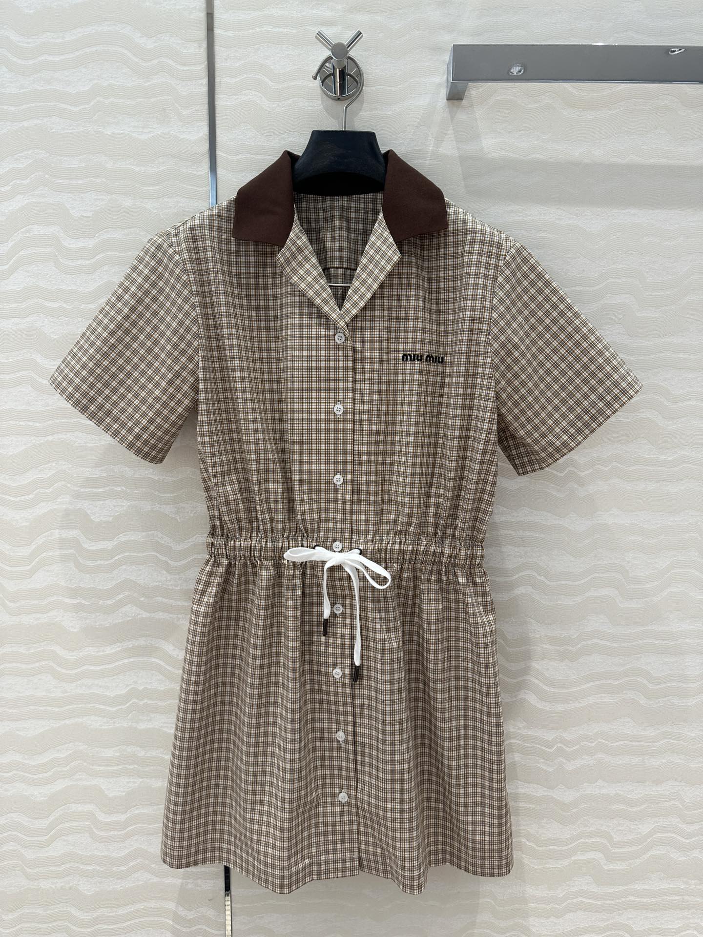 Miu Miu Short-sleveed Shirt Dress Brown Cotton
