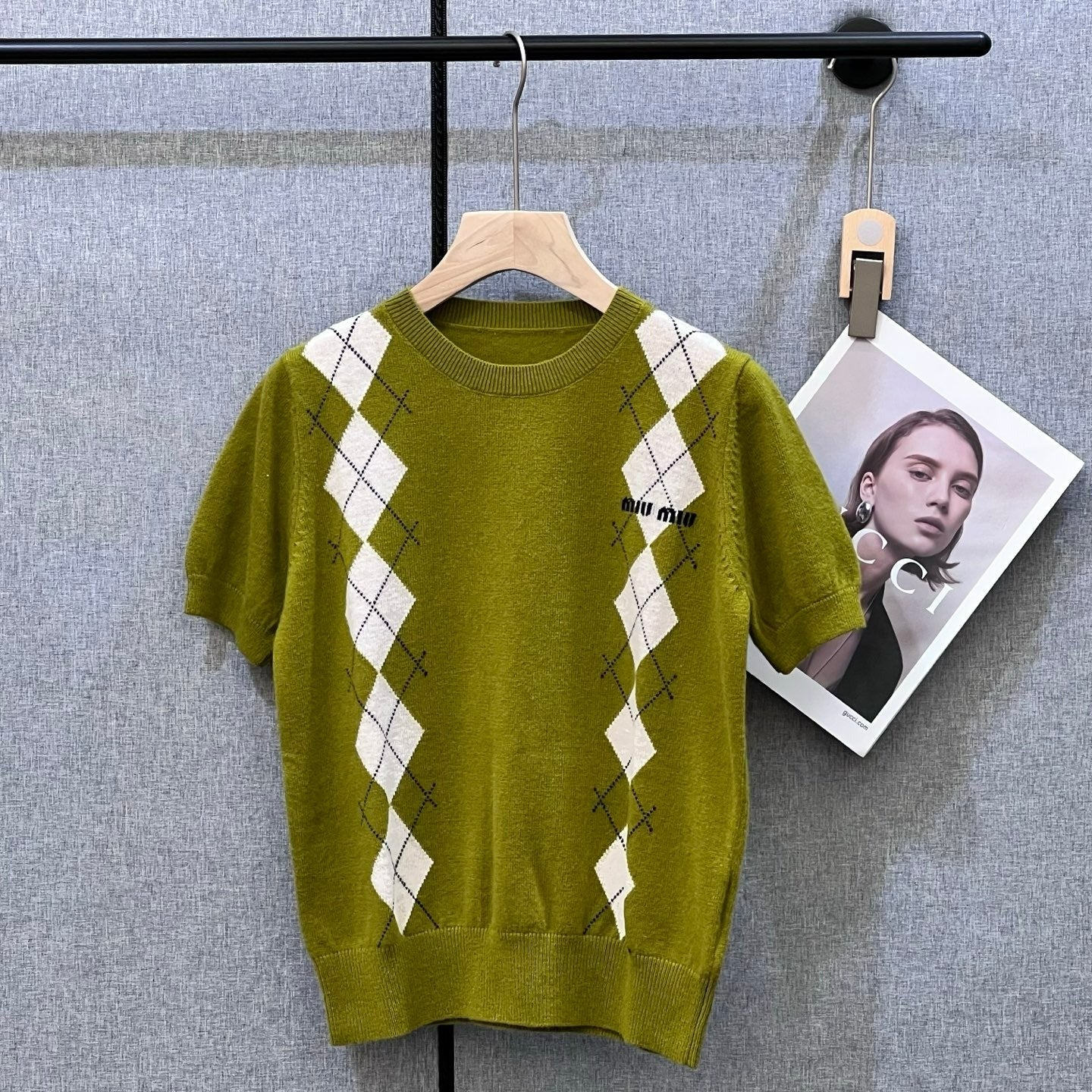 MIUMIU SHORT-SLEEVE KNIT TOP STYLE 367