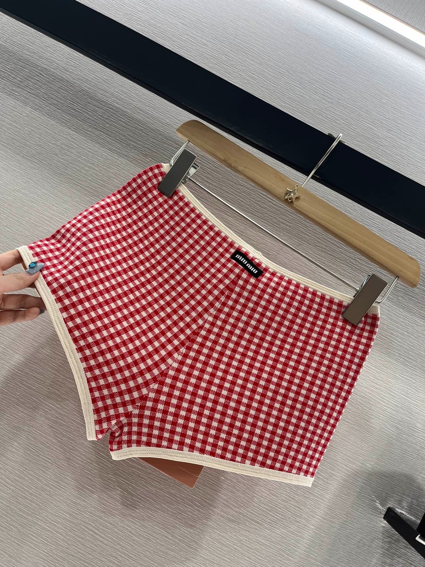 MIUMIU CHECKERED SHORTS AND ROUND-NECK TEE SET 274653
