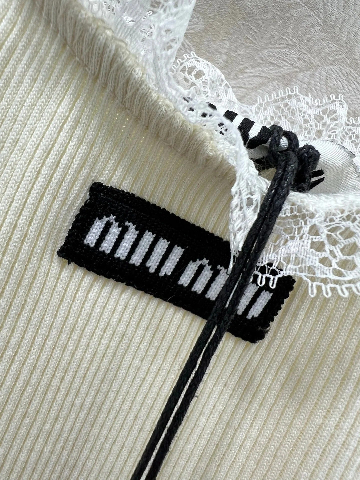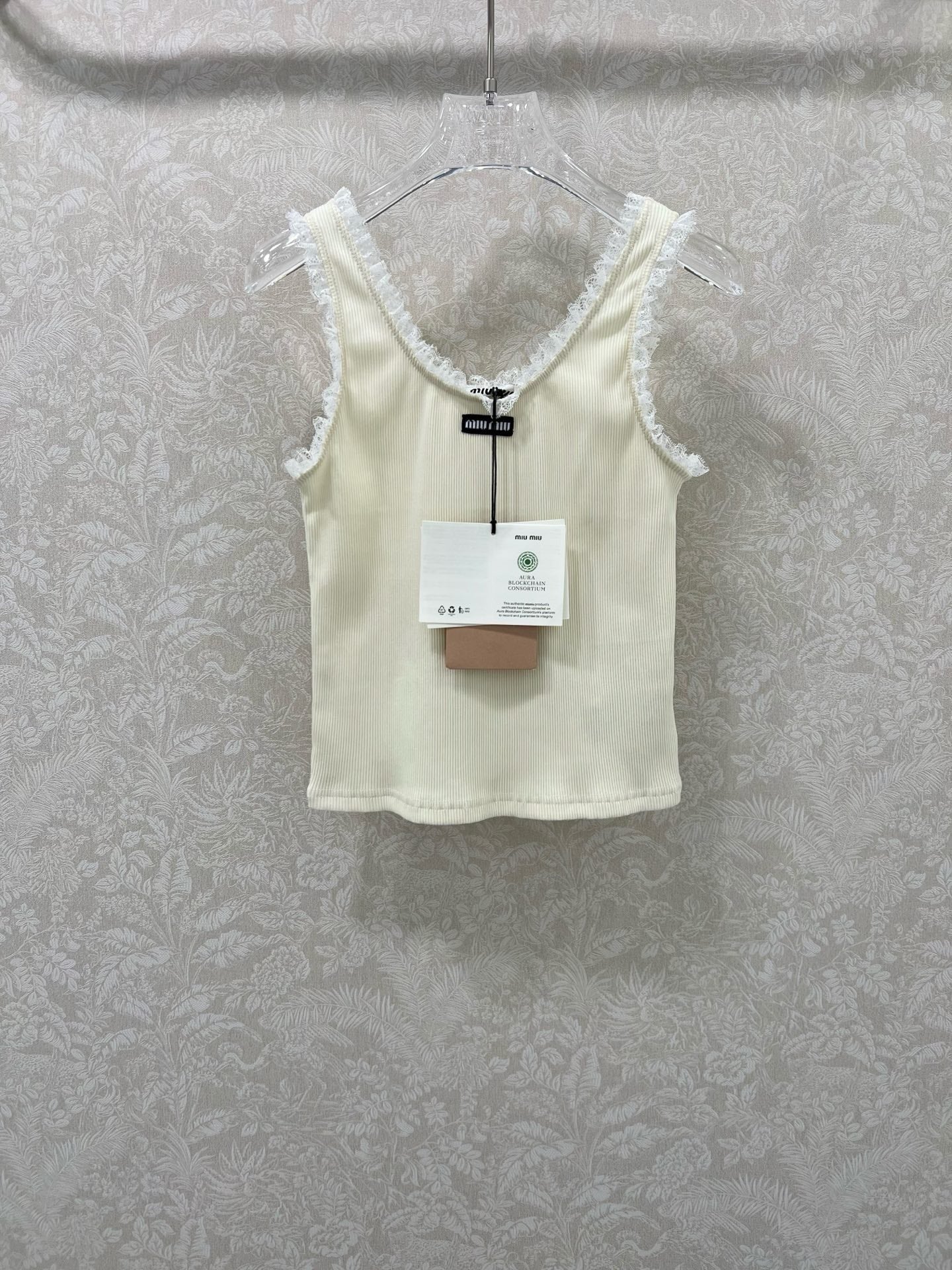 MIUMIU KNIT TANK TOP WITH RUFFLED TRIM 275104