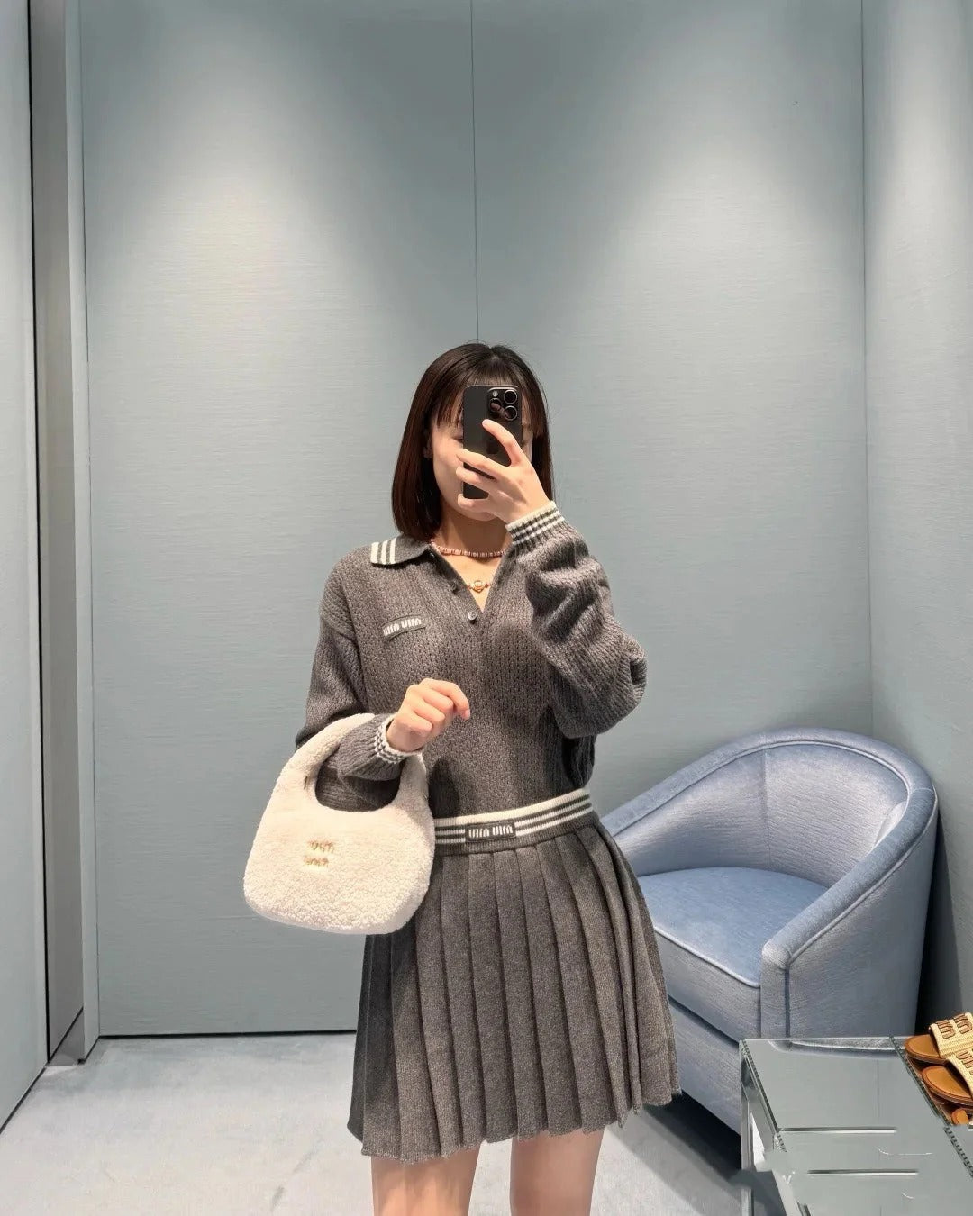 MIUMIU TOP AND SKIRT SET STYLE 373