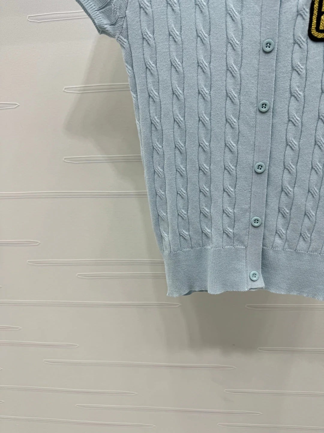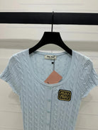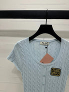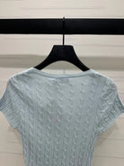 MIUMIU U-NECK KNITTED SHORT-SLEEVE TOP LIGHT BLUE 274948
