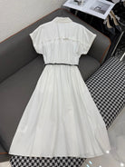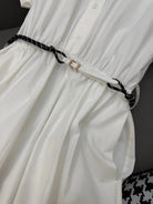 MM LONG DRESS IN WHITE TEXTURED FABRIC WITH BELT
