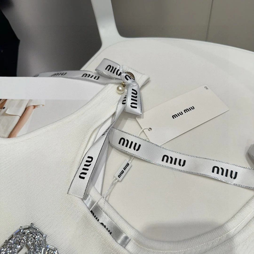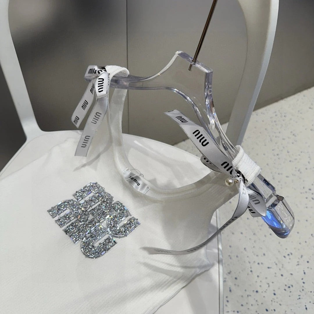 TANK TOP 622143 IN WHITE COTTON RIBBED EMBOSSED CRYSTAL
