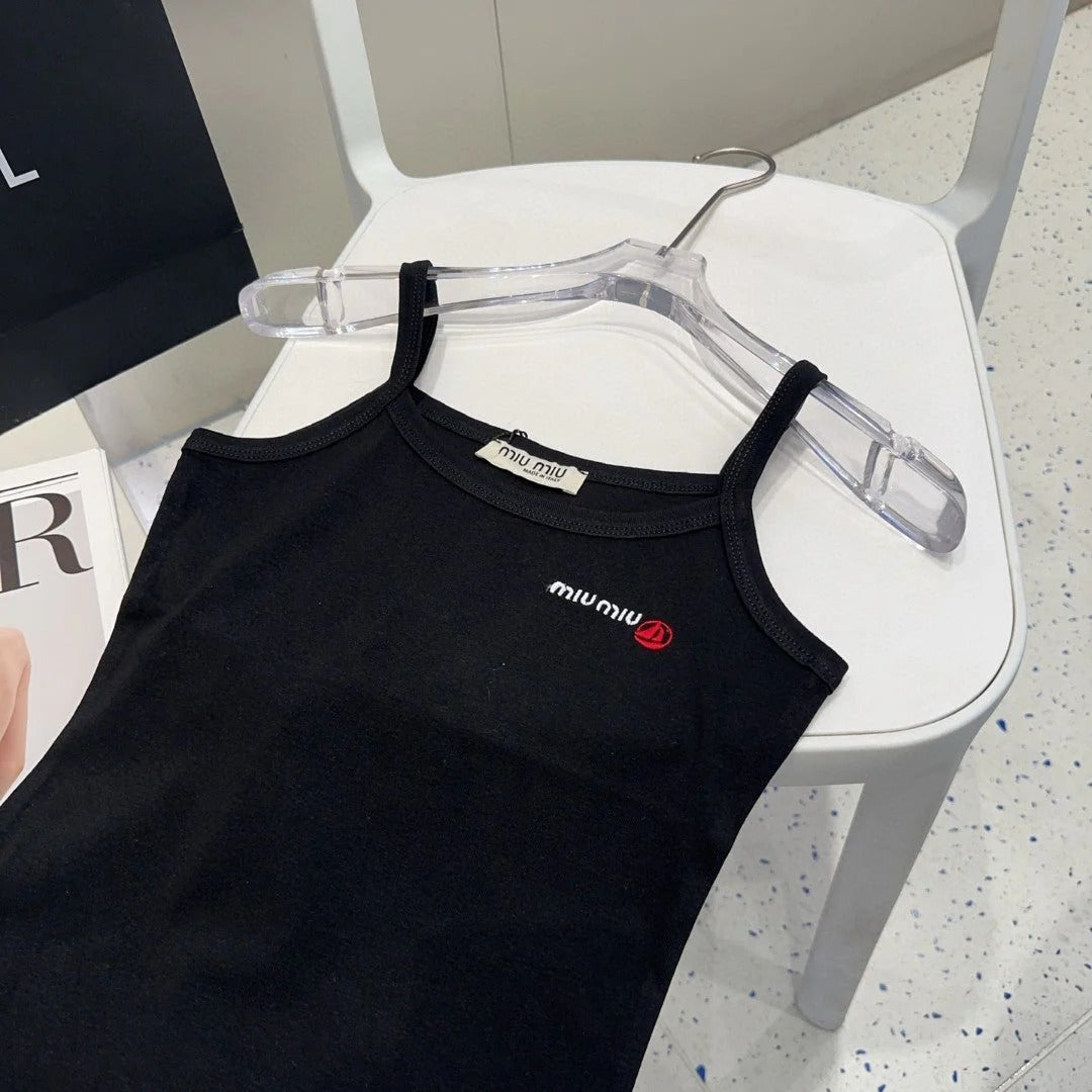 CAMISOLE 613779 IN BLACK COTTON RIBBED