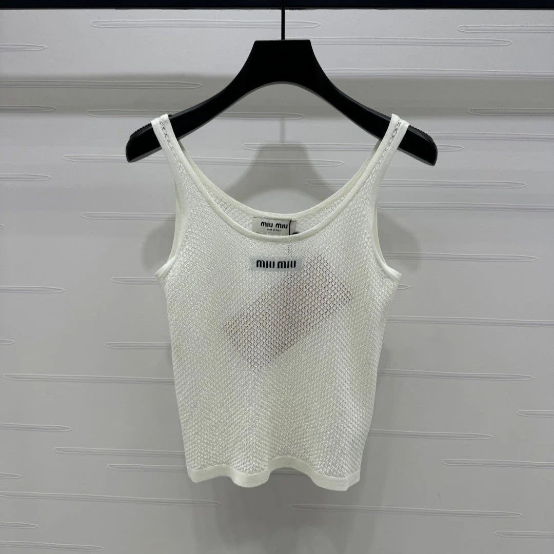 MIU 25S ROUND NECK KNIT TANK TOP WITH HOLES 264266