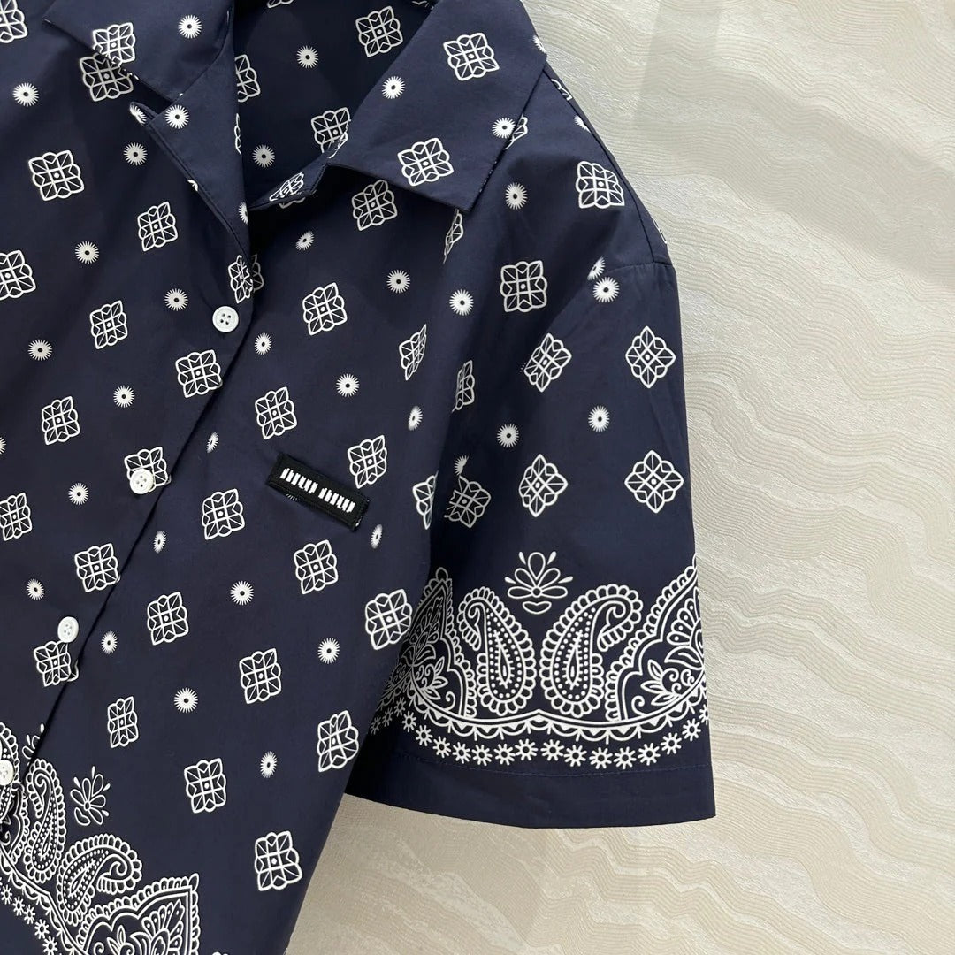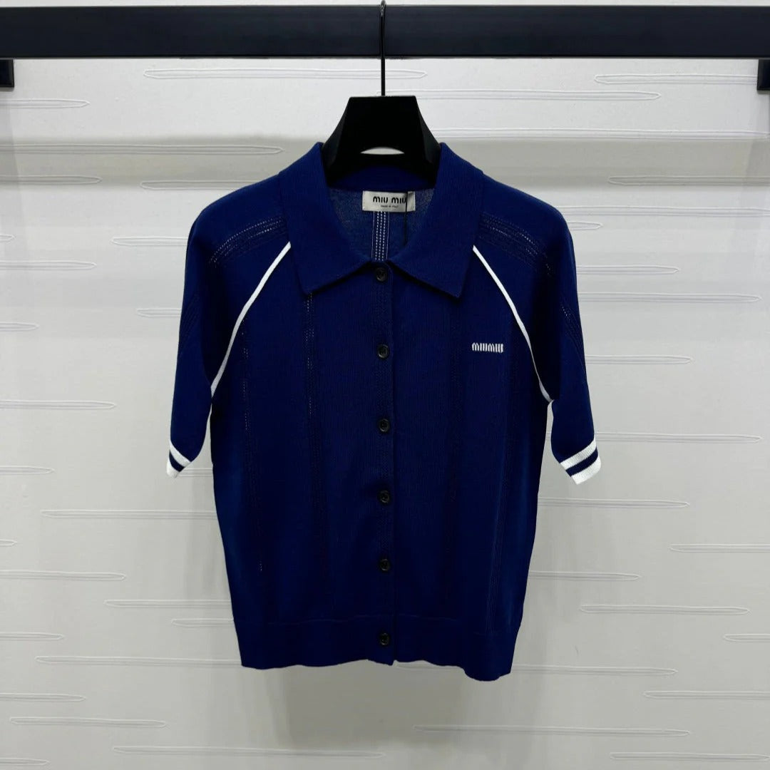 MIUMIU MIDNIGHT BLUE SHORT-SLEEVE SHIRT 261480