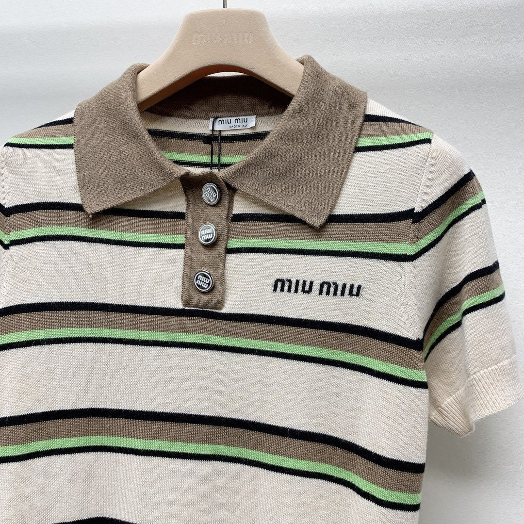 MIUMIU U-NECK KNITTED SHORT-SLEEVE TOP WHITE 274946