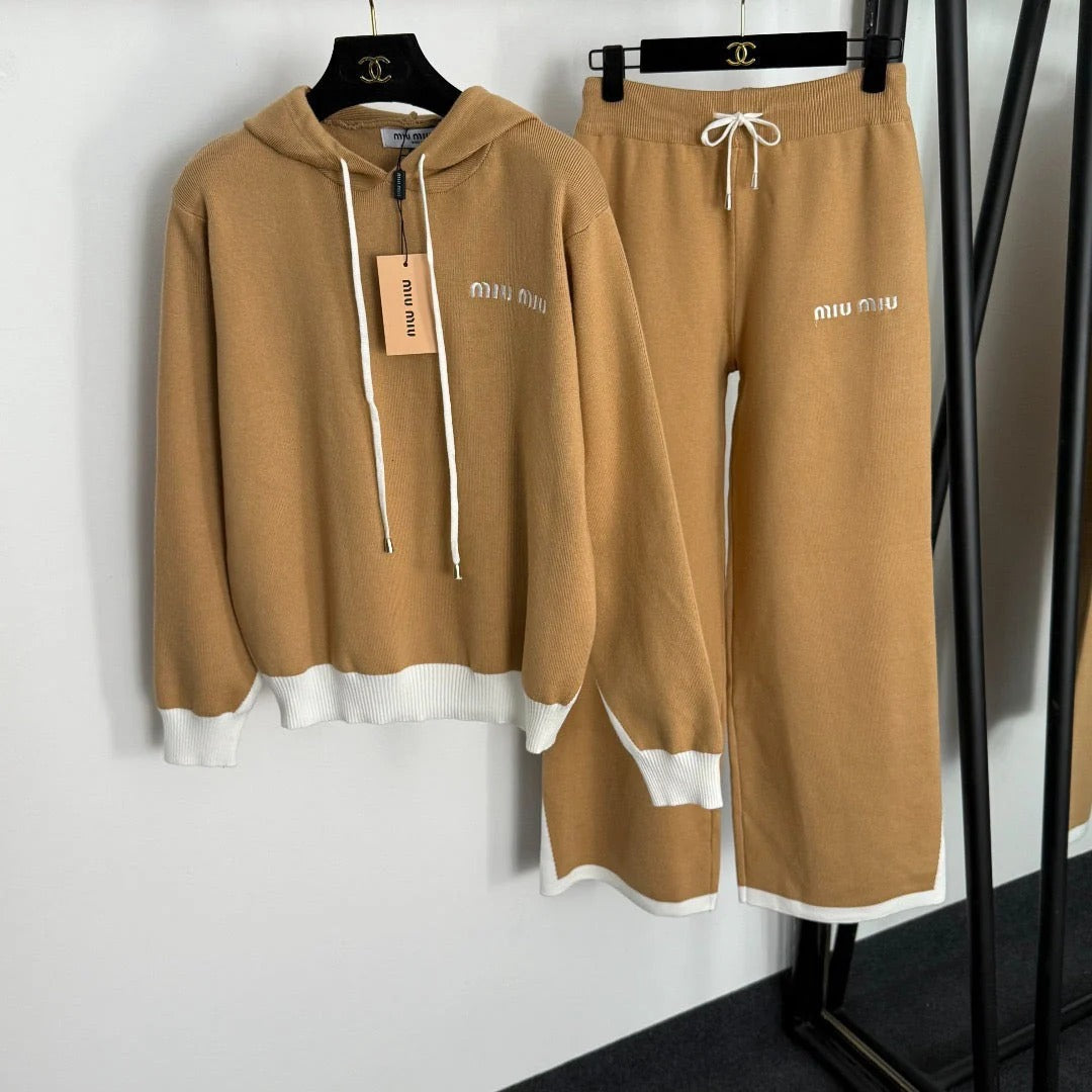 MIUMIU KNIT TOP AND STRAIGHT-LEG PANTS SET STYLE 218