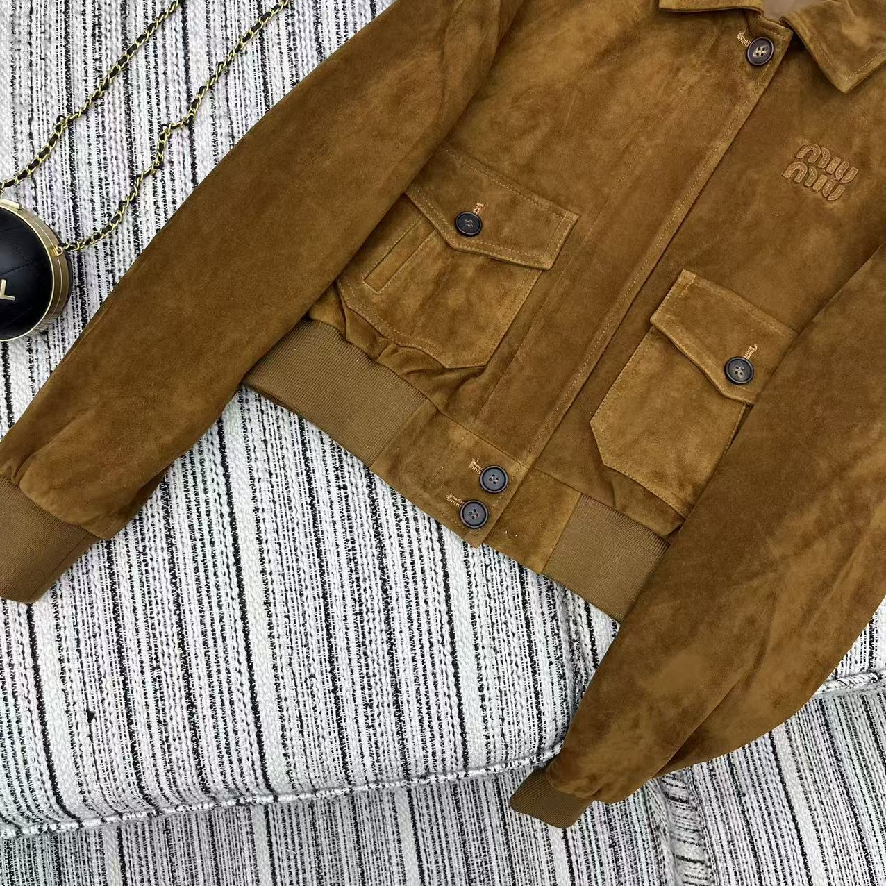 Miu Miu 25 Suede Jacket Brown Yellow 302349