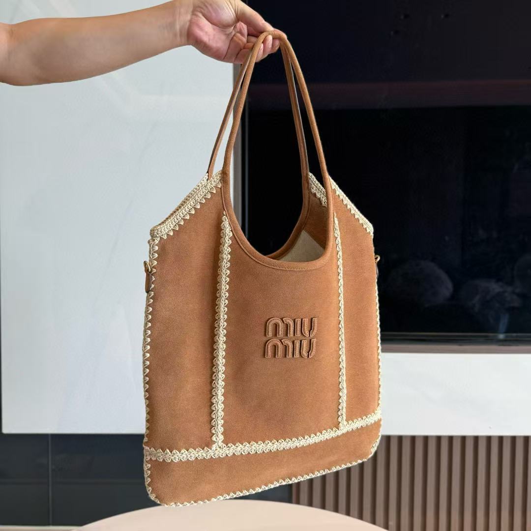 Miumiu Ivy Tote Bag 40 Brown Suede