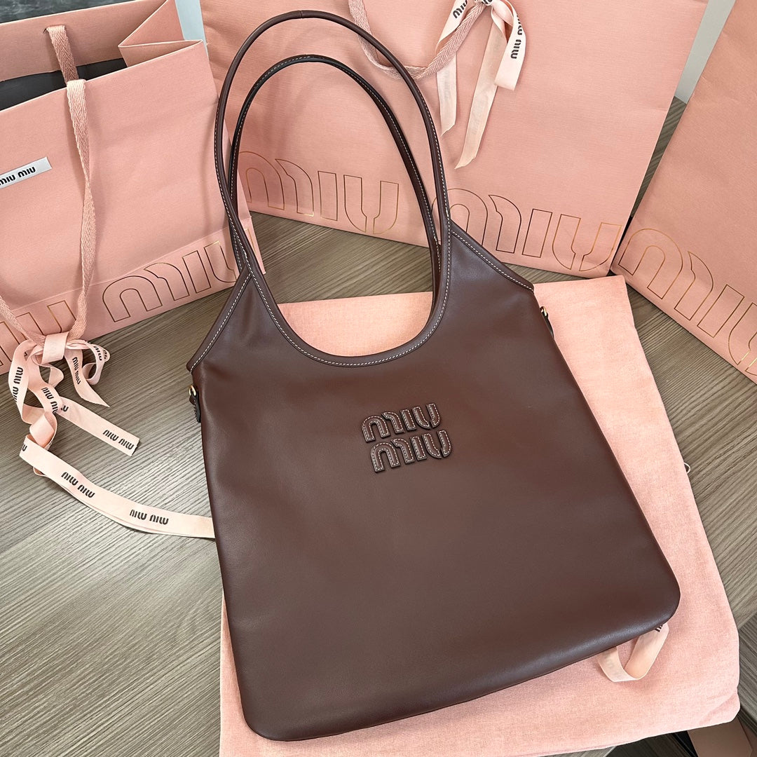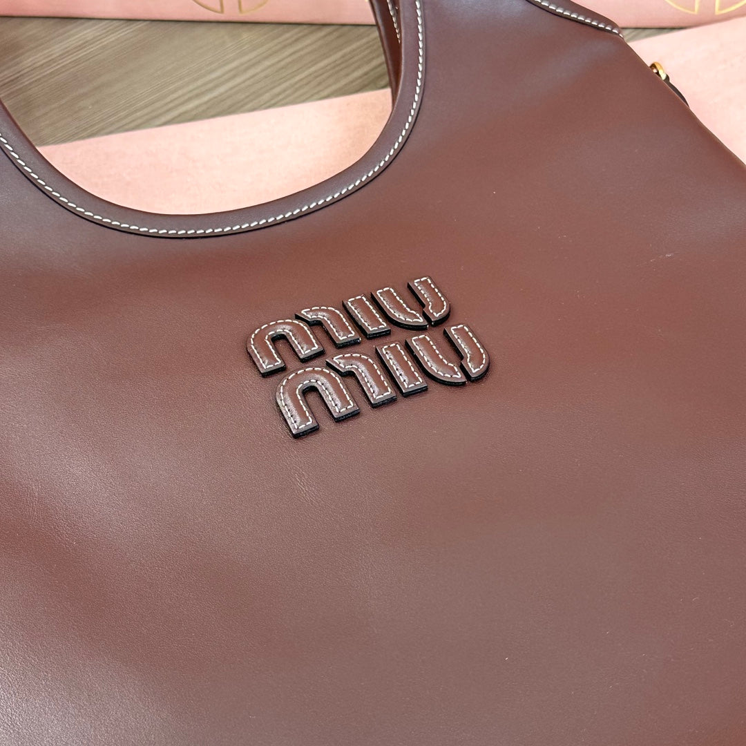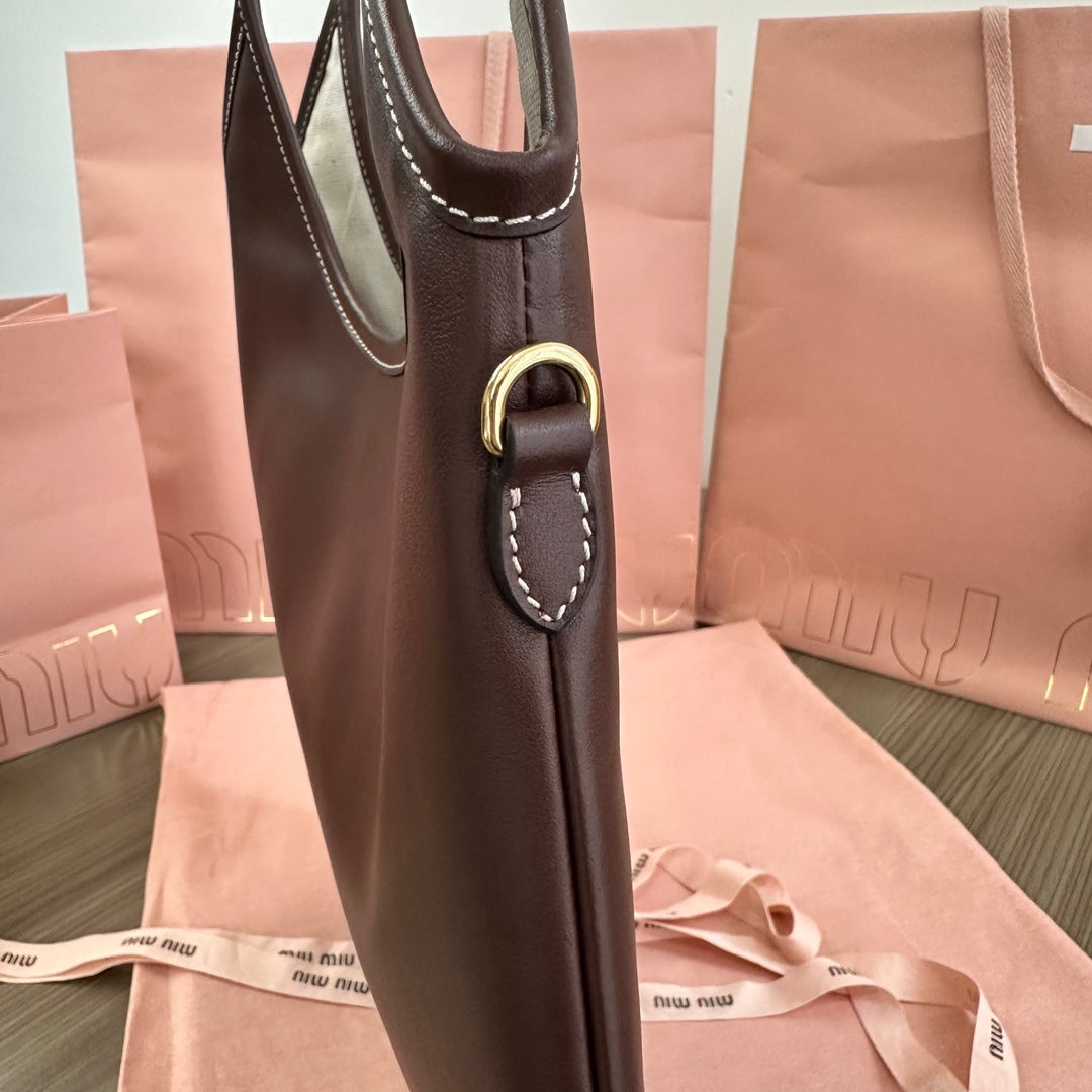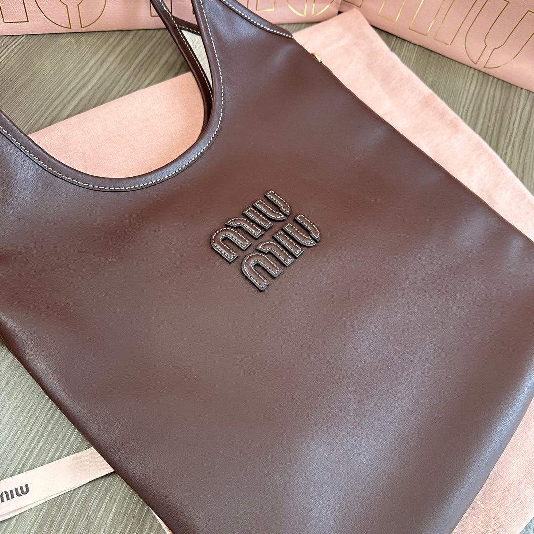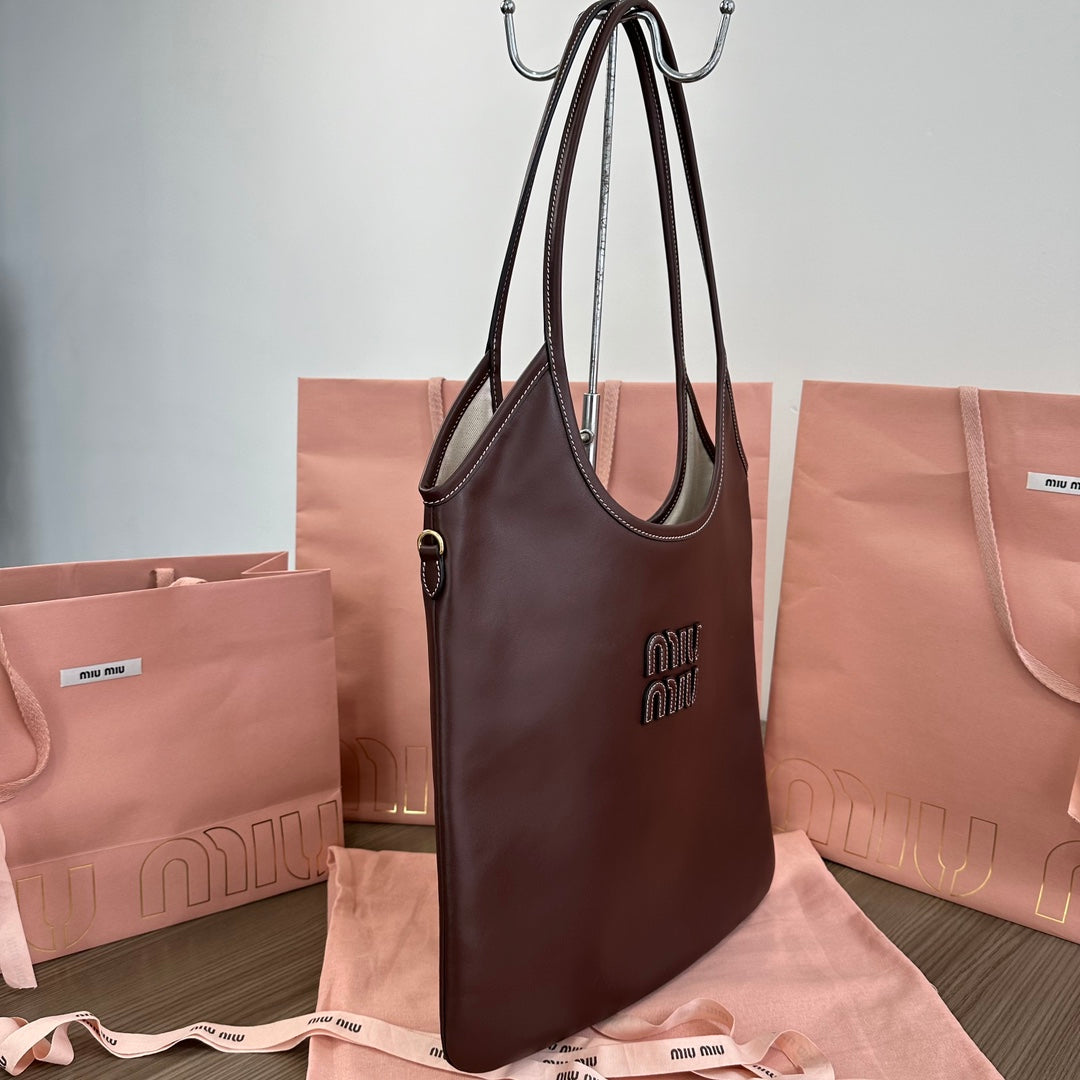 Miu Ivy Tote Bag 35cm Dark Brown Leather 217008