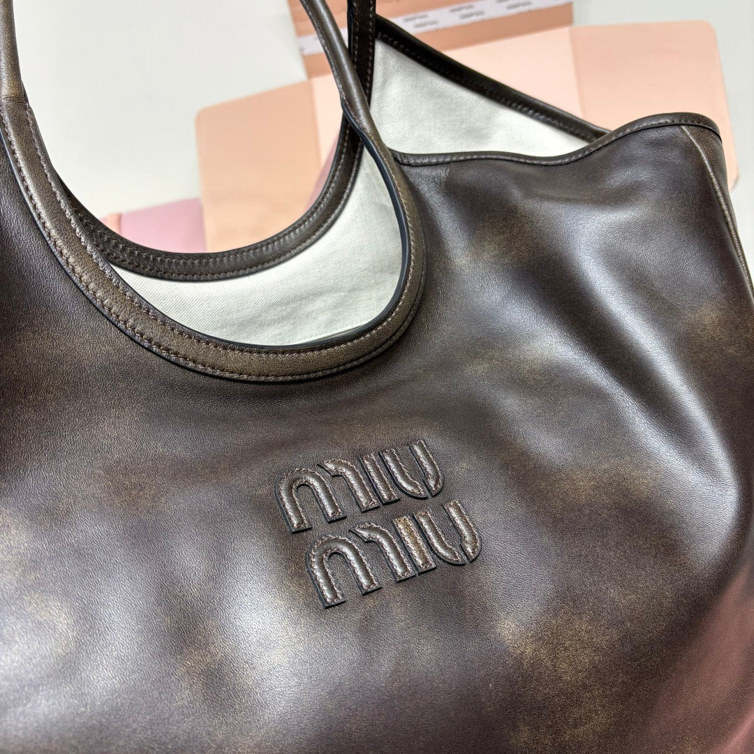 Miu IVY Leather Tote Bag Coffee Brown Nappa Leather