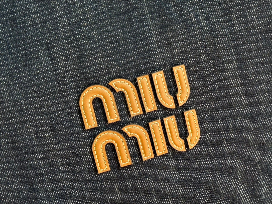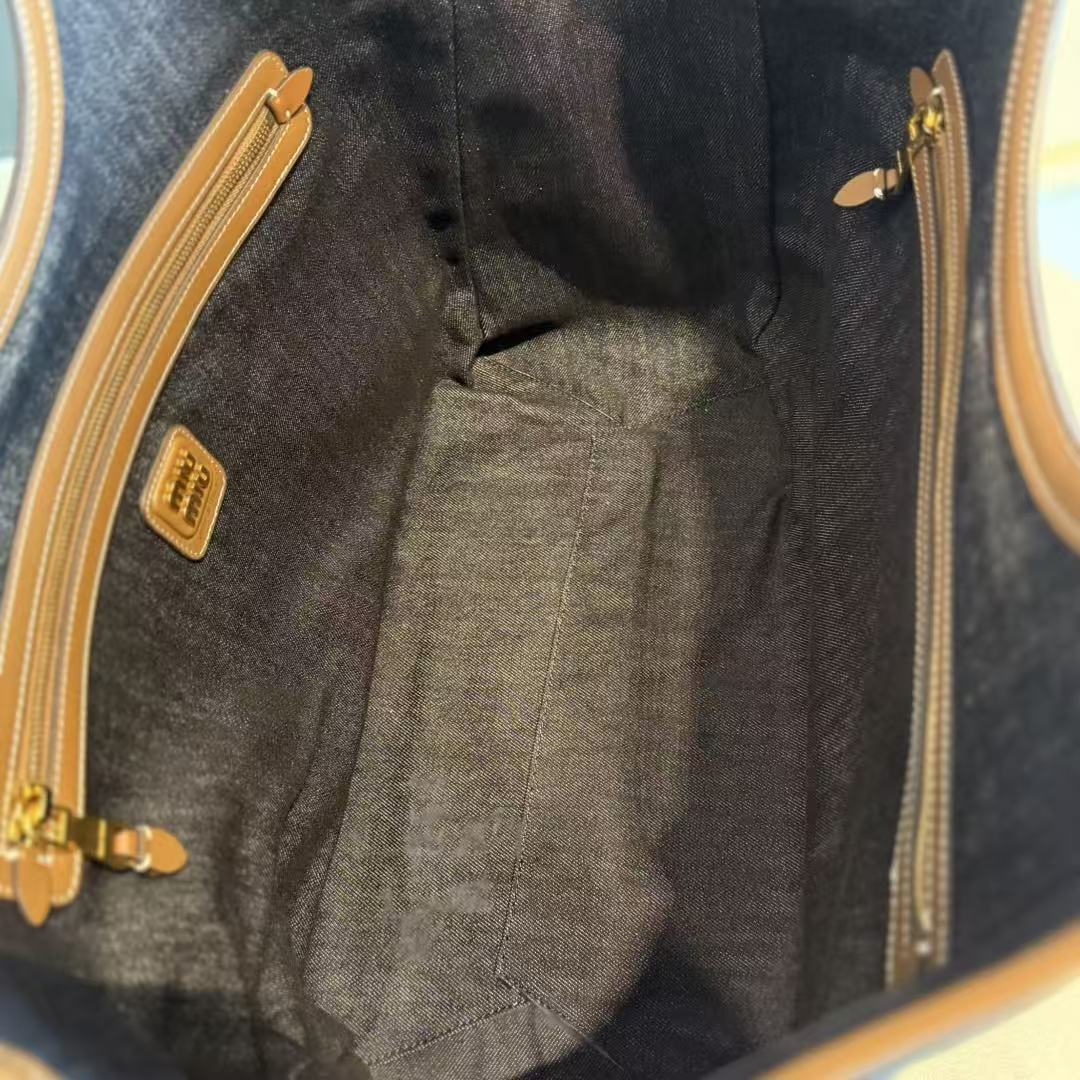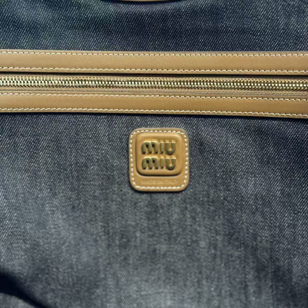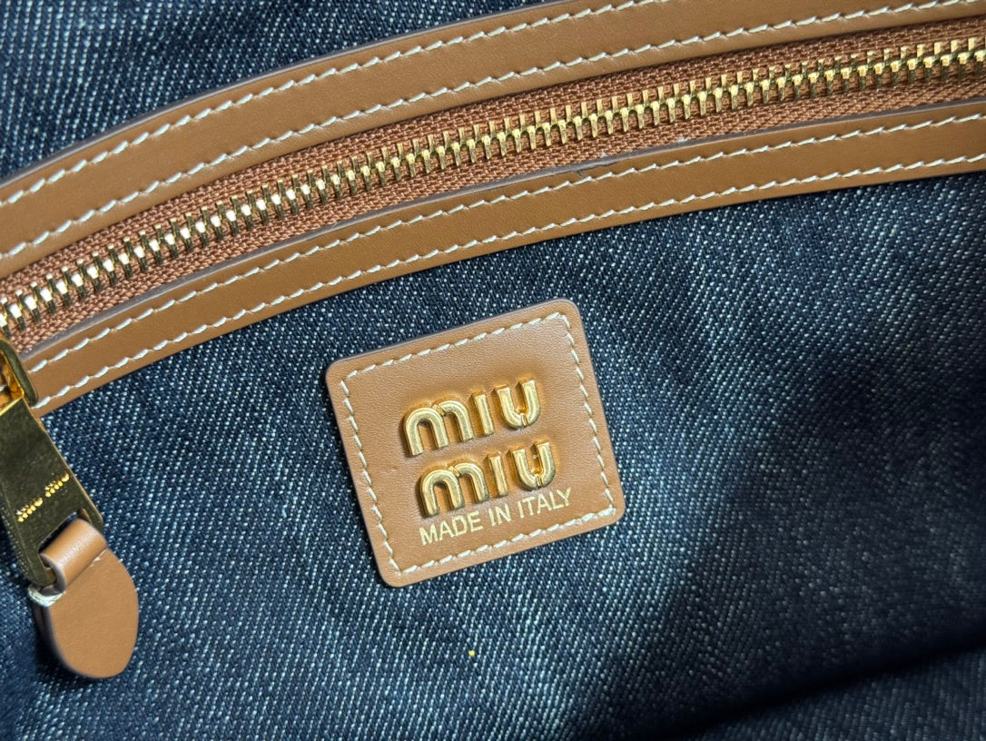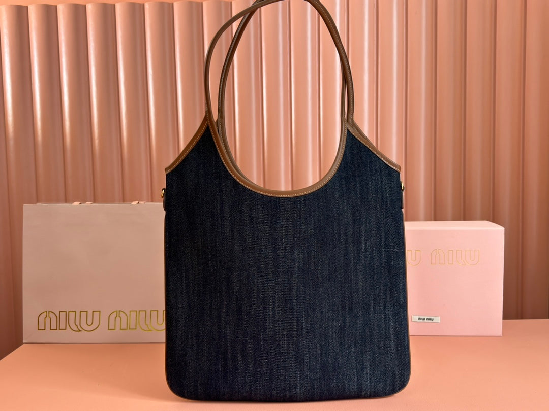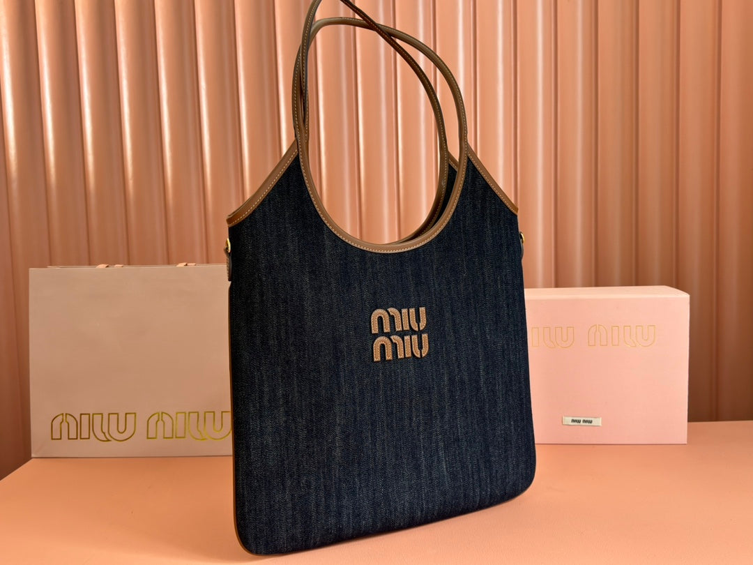 Miu Ivy Tote Bag 35cm Blue Denim Leather 230775