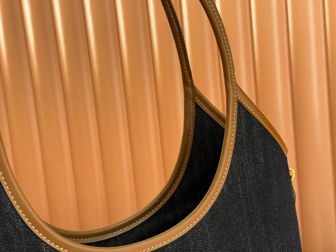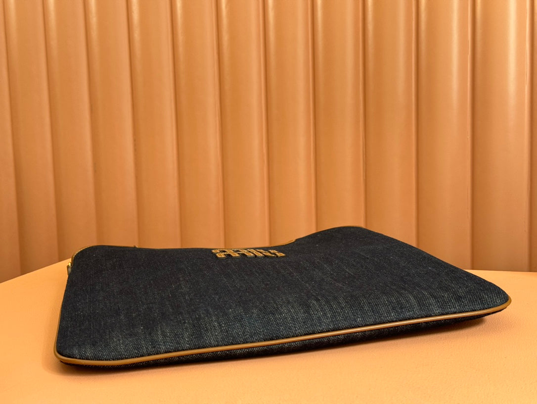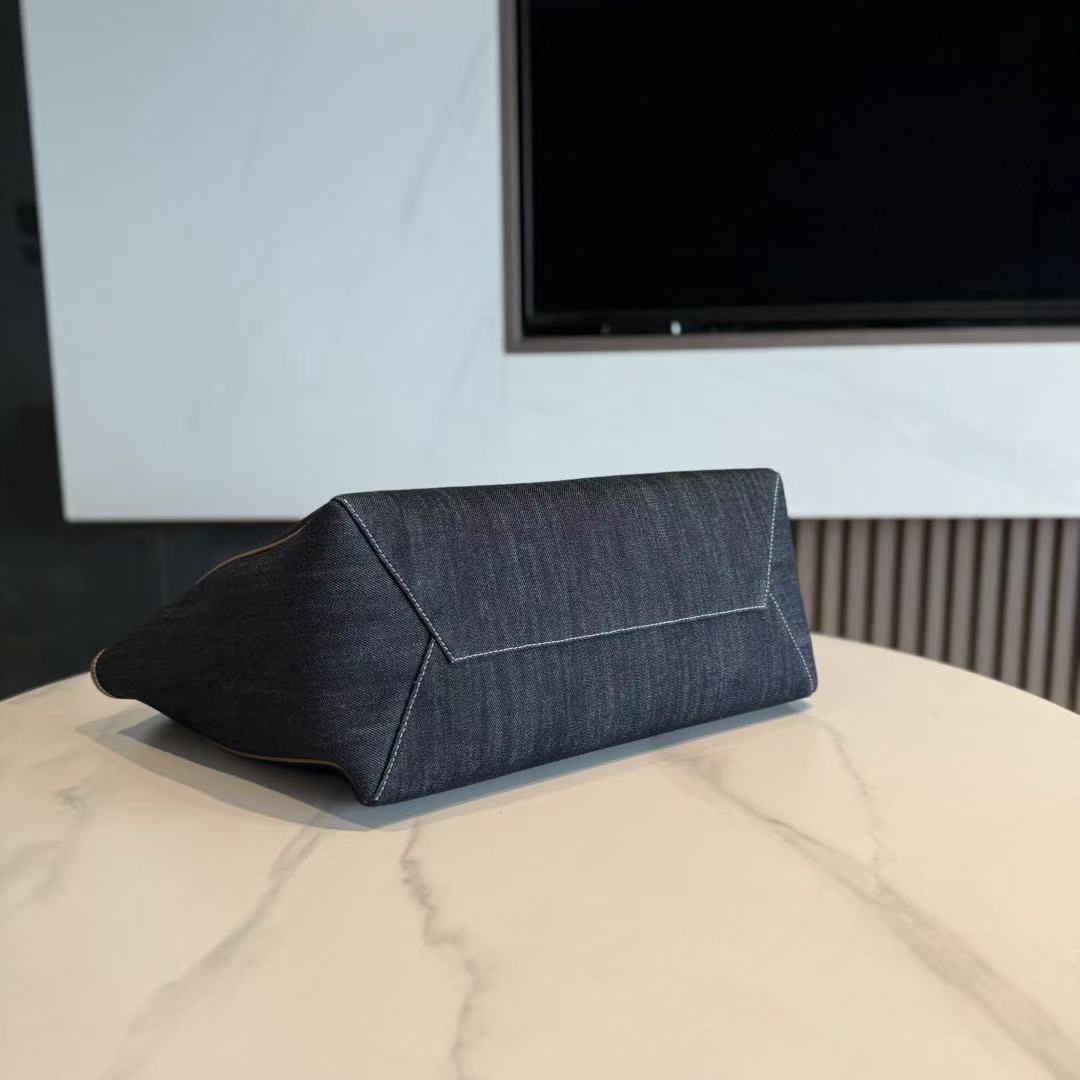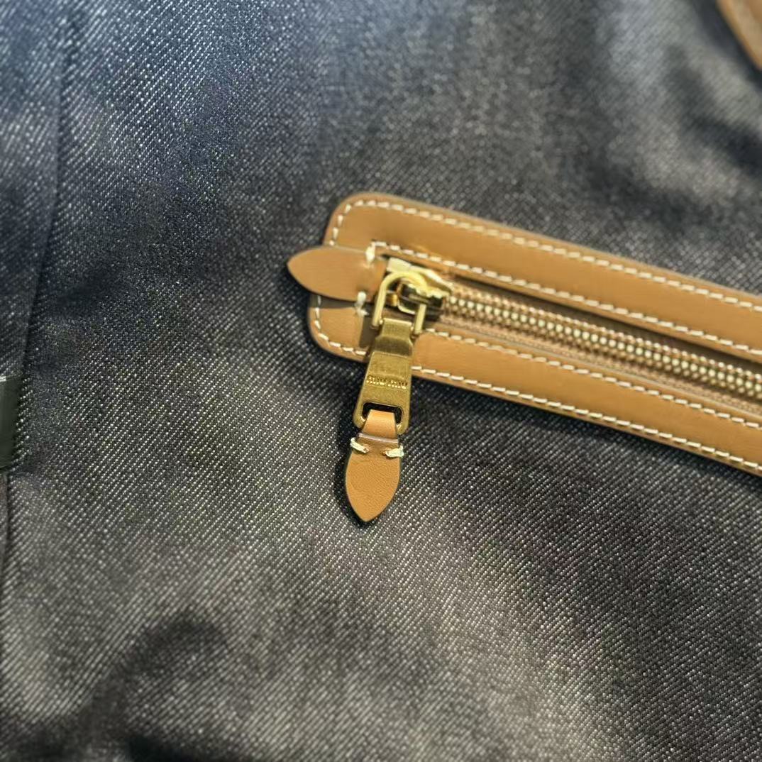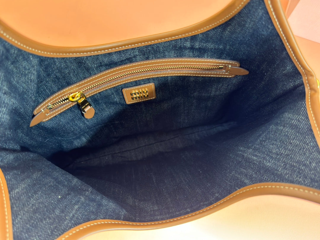 Miu Ivy Tote Bag 35cm Blue Denim Leather 230775