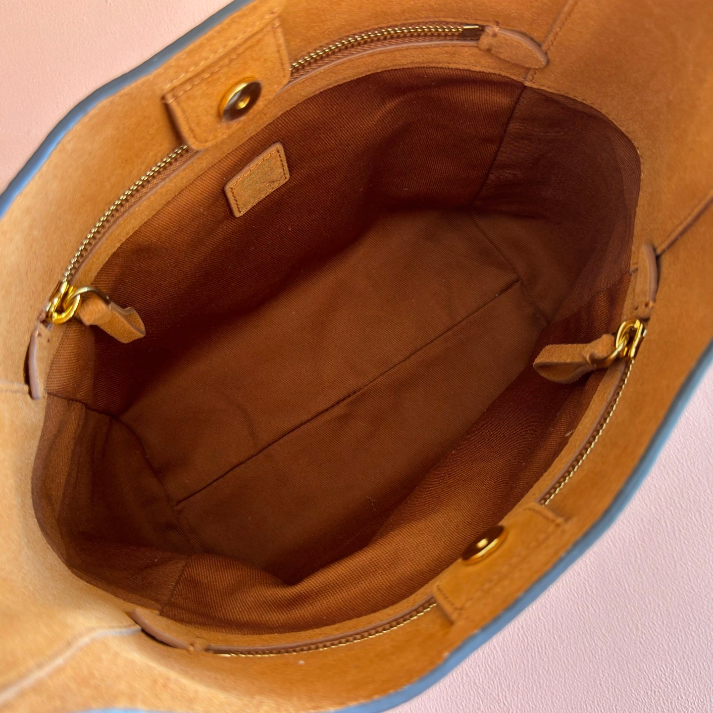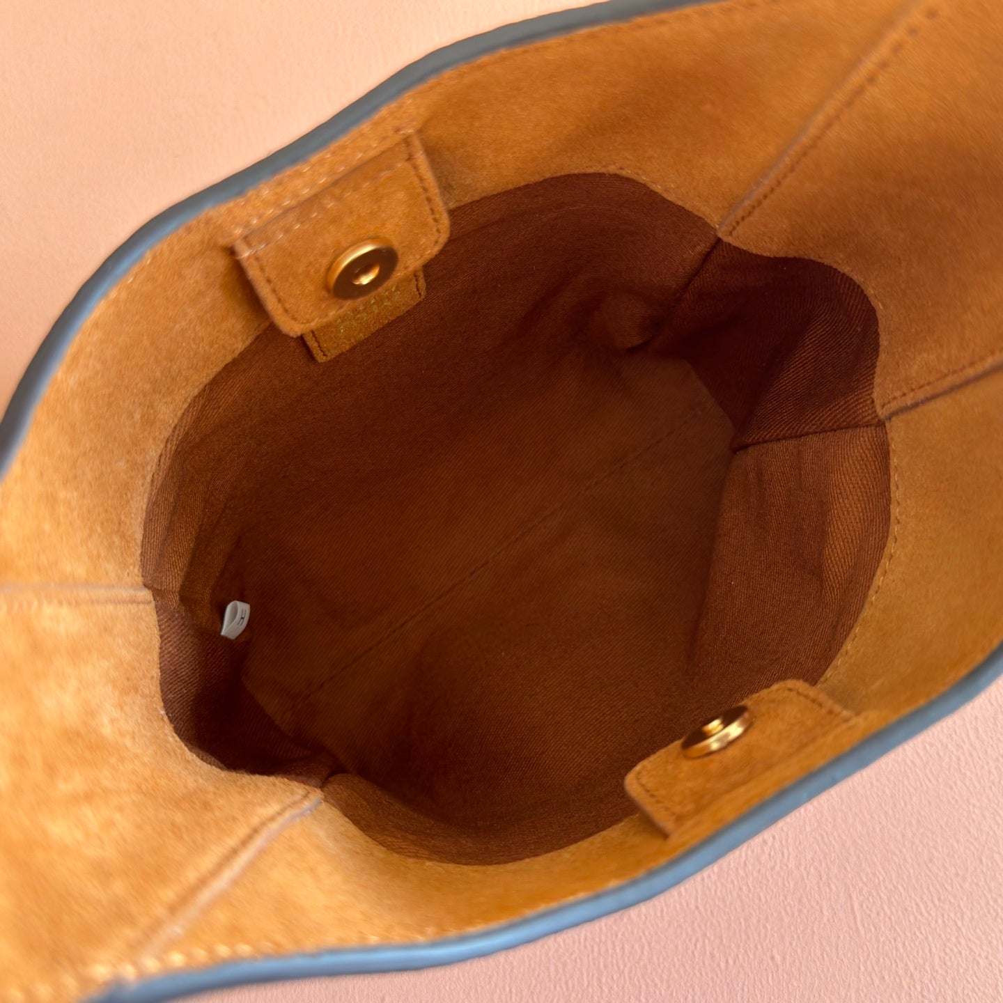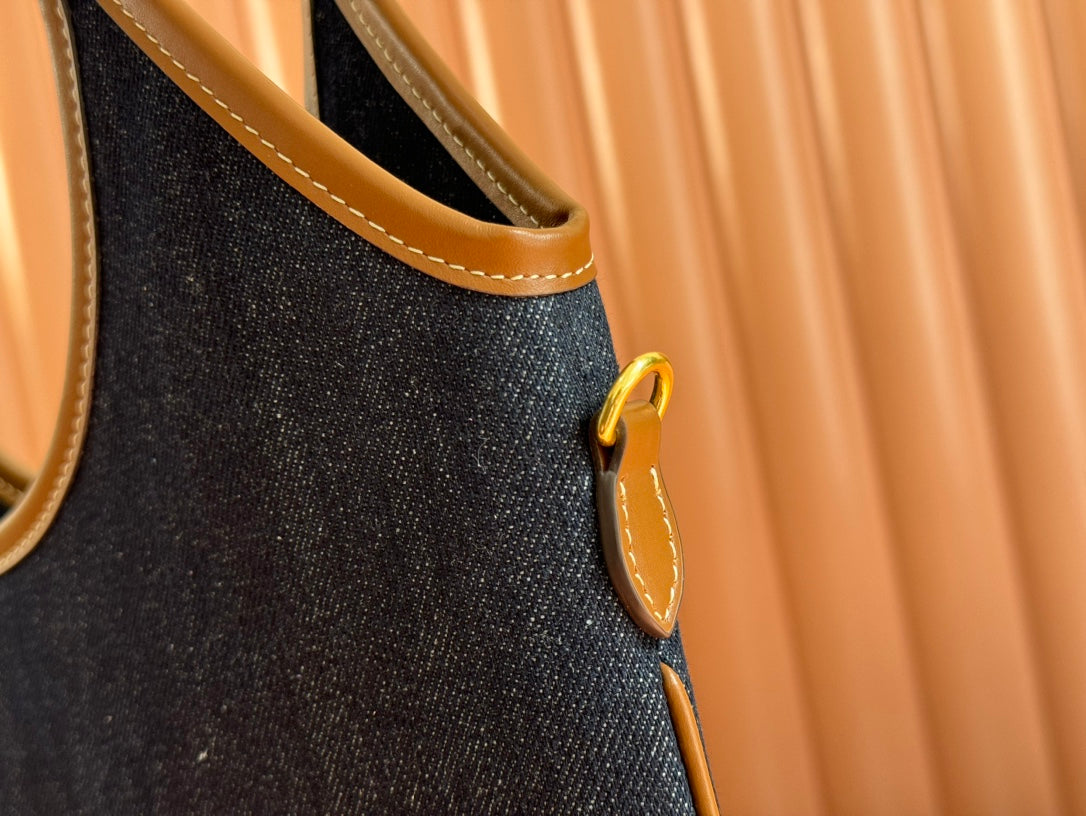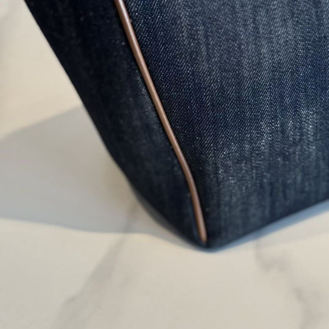 BUCKET BAG 29 DENIM BLUE AND BRANDY IN CANVAS