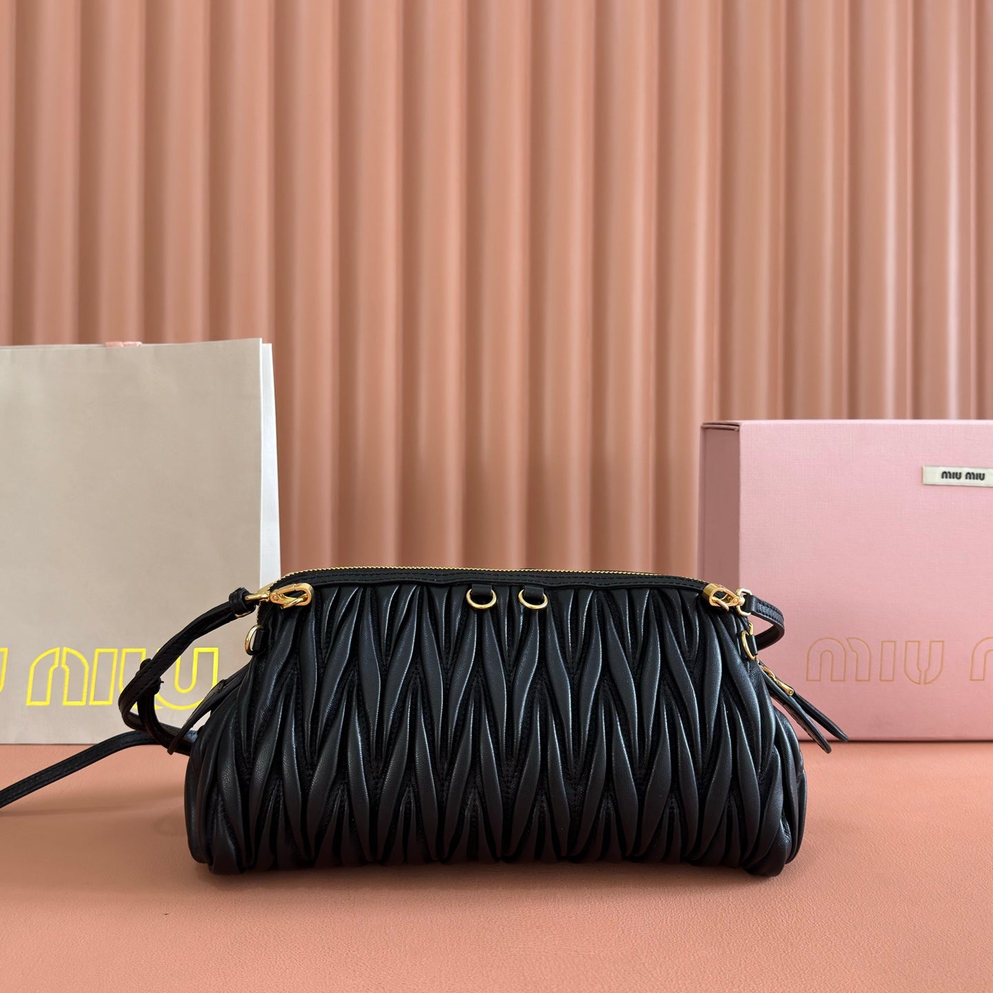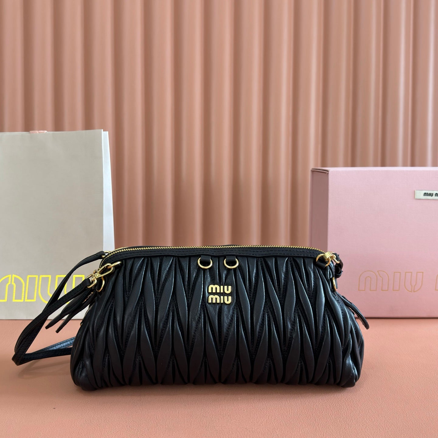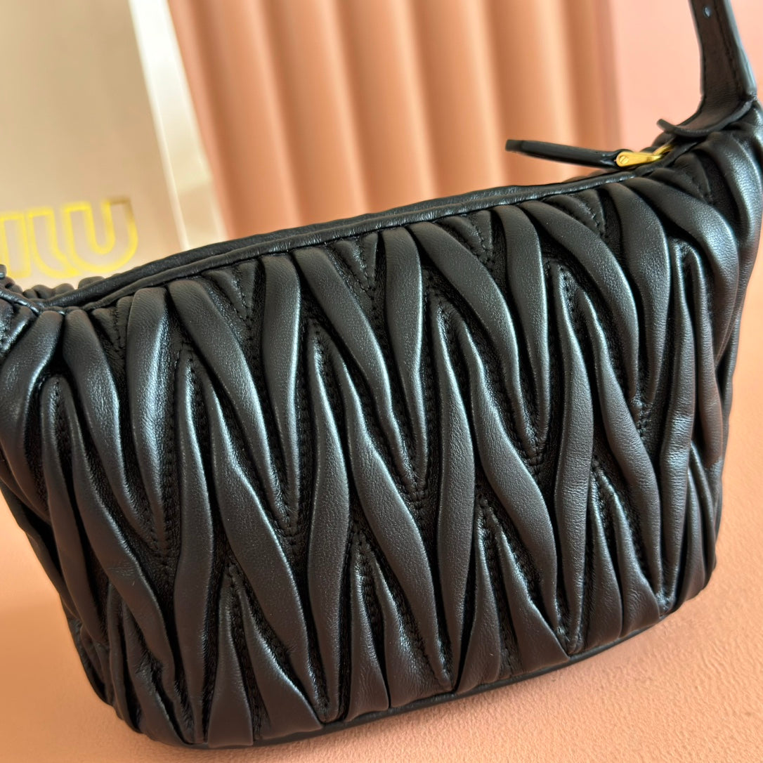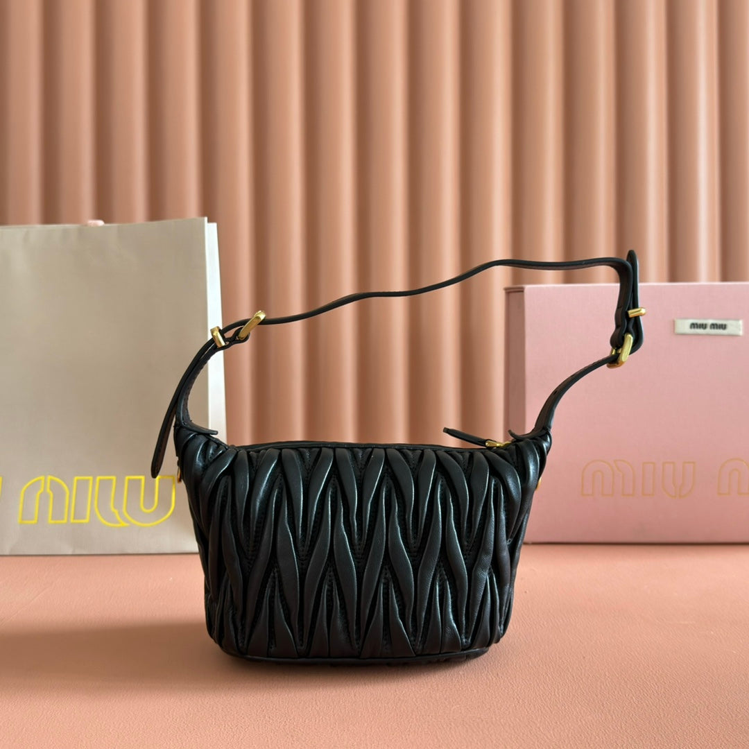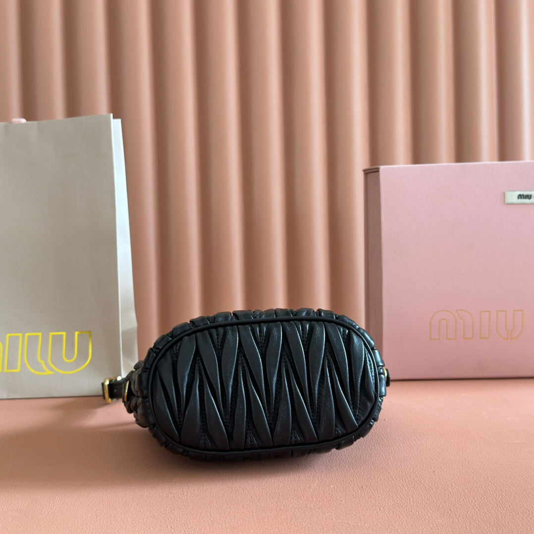 Miu Matelassé Pouch Bag 15cm Black Leather