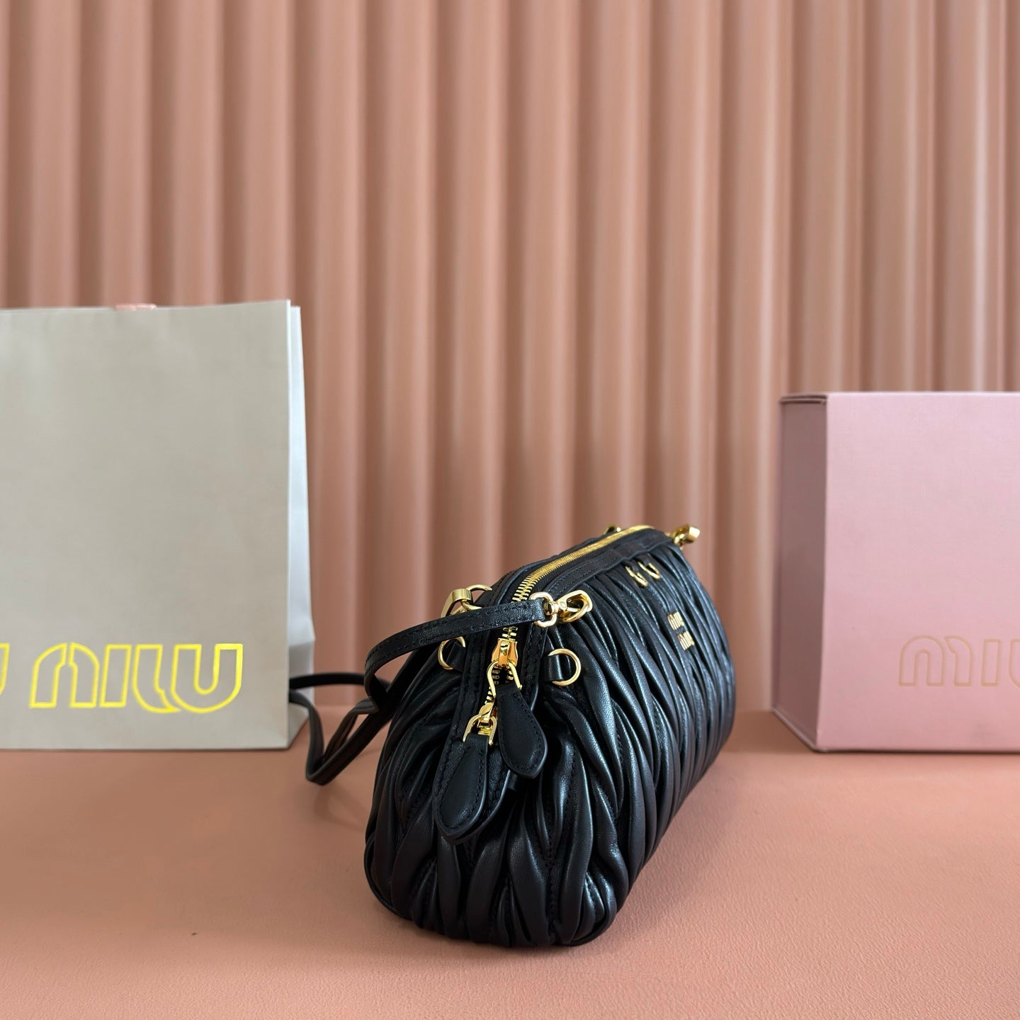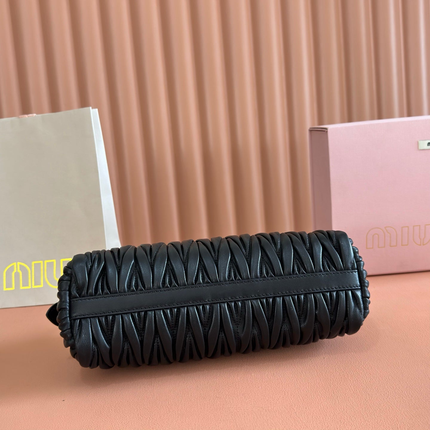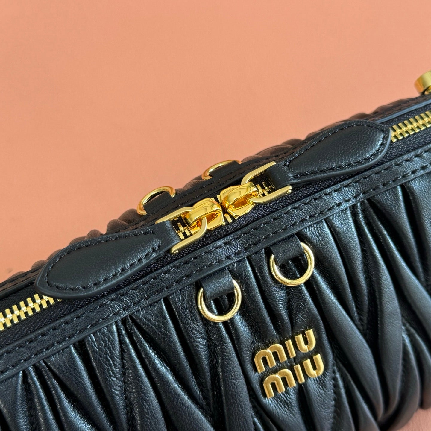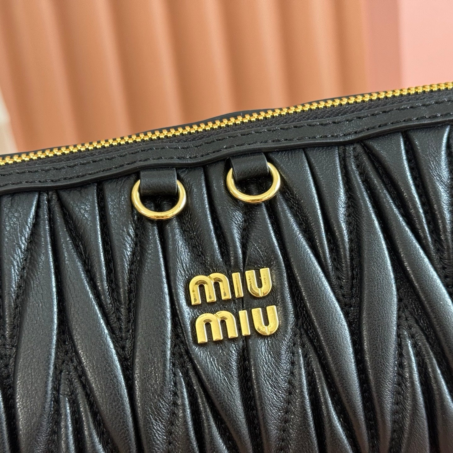 Miu Matelassé Pouch Bag 15cm Black Leather
