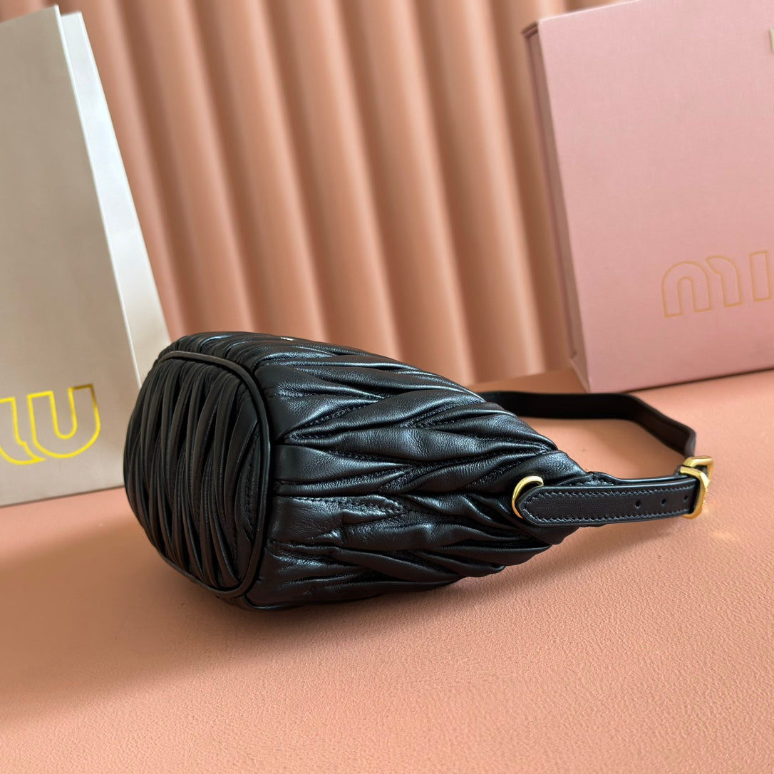 Miu Leather Bucket Bag 23cm Black Grain Cowhide