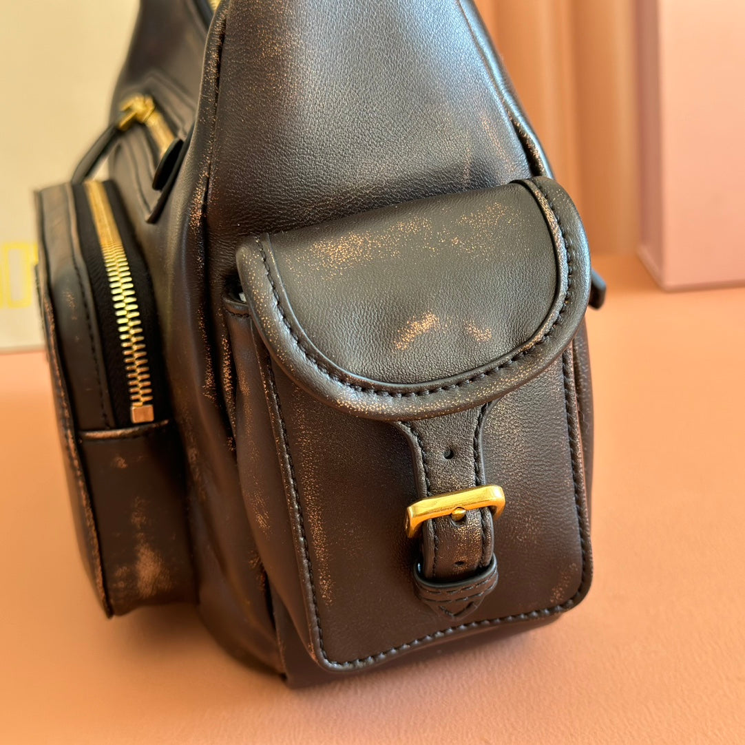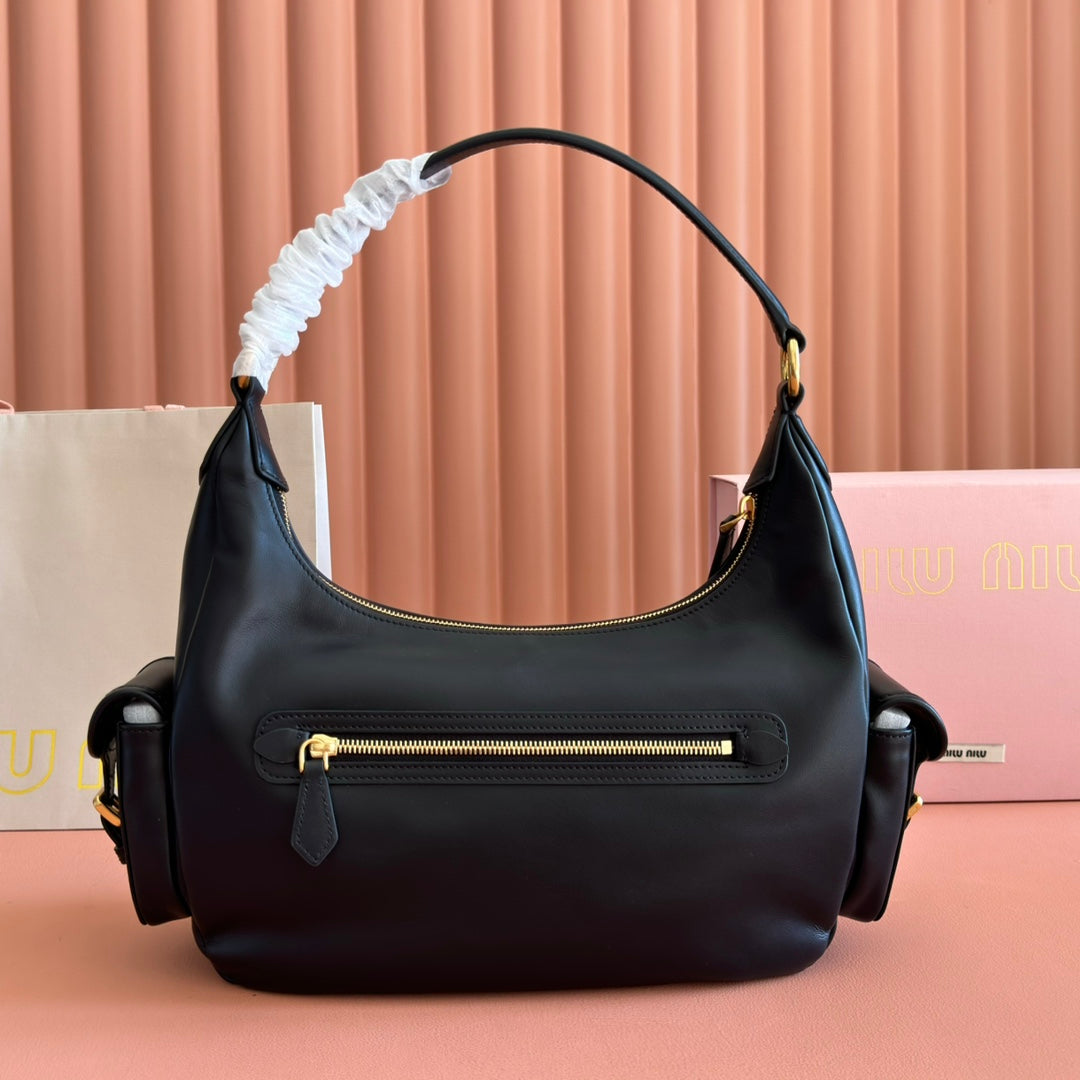 Miu Pocket Shoulder Bag Black Calfskin
