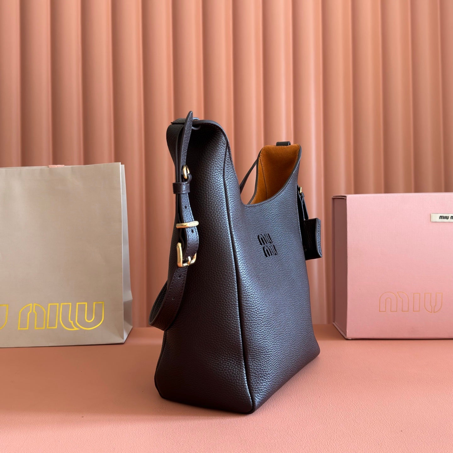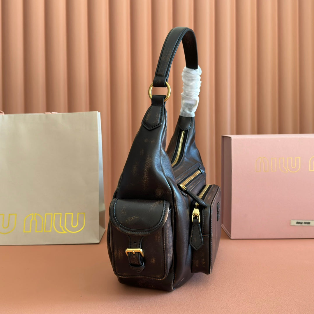Miu IVY Hobo Bag Brown Suede