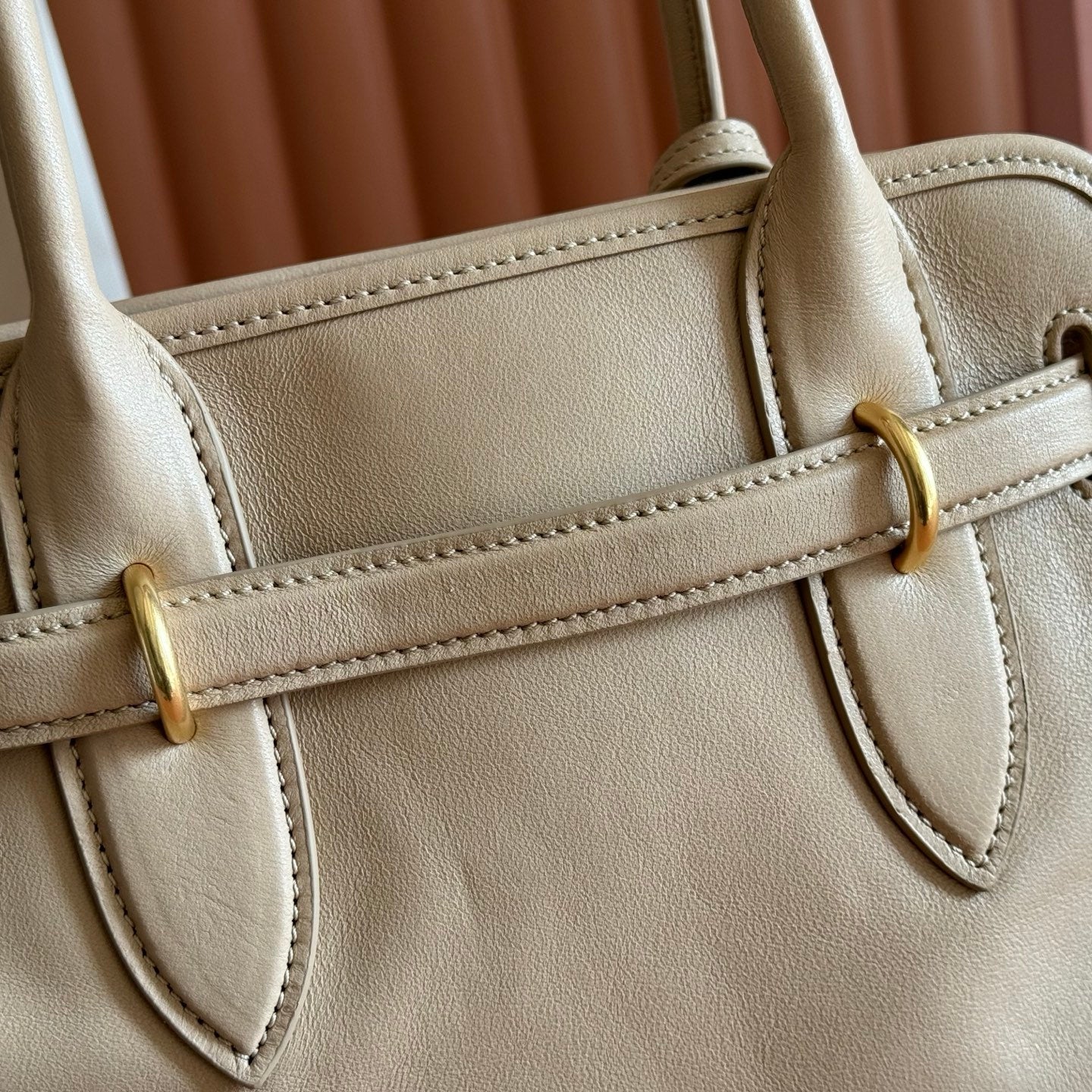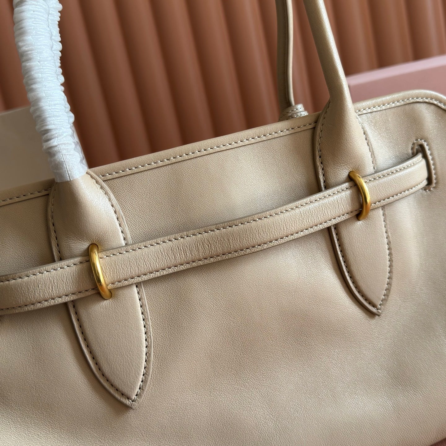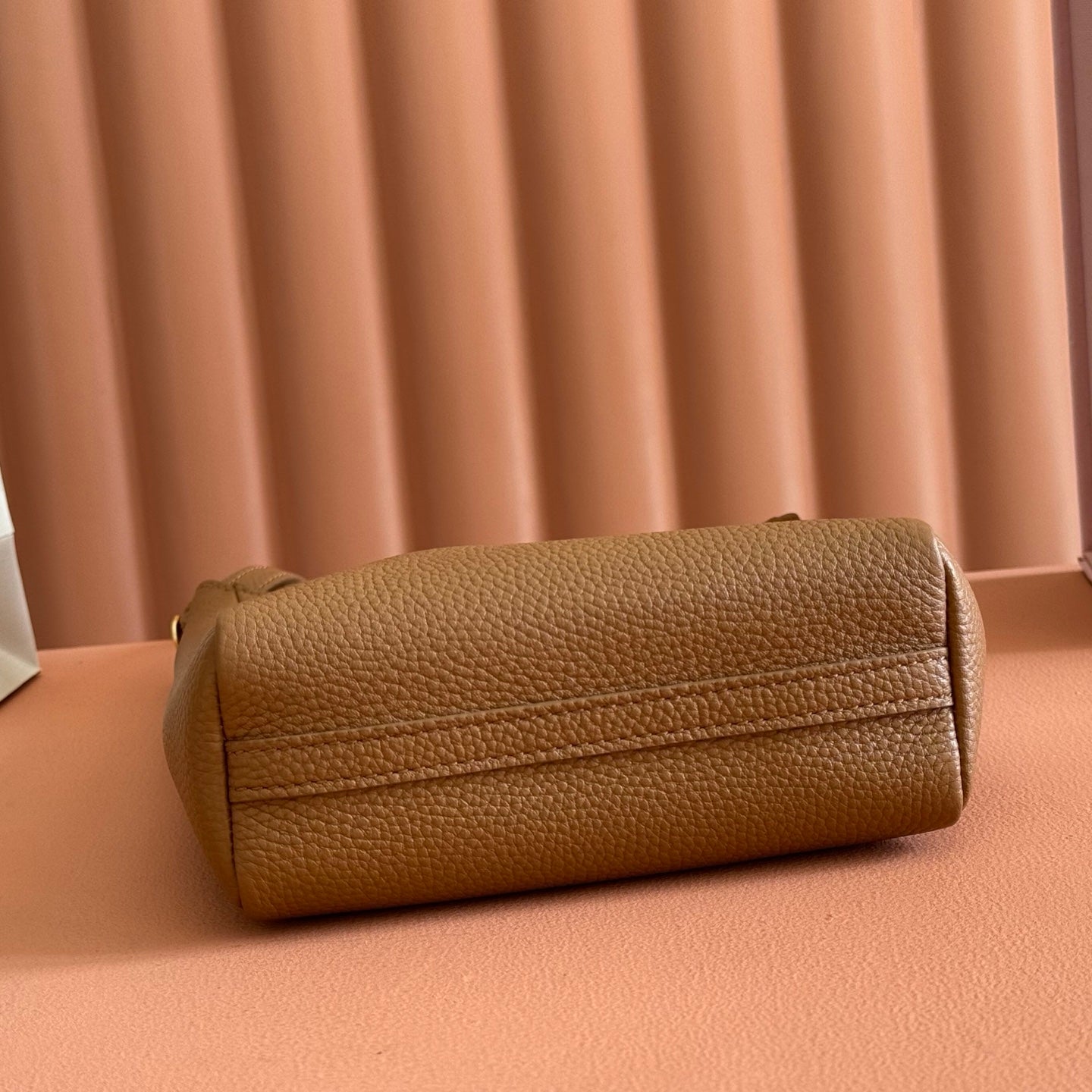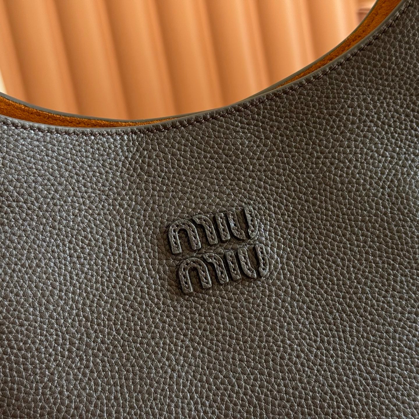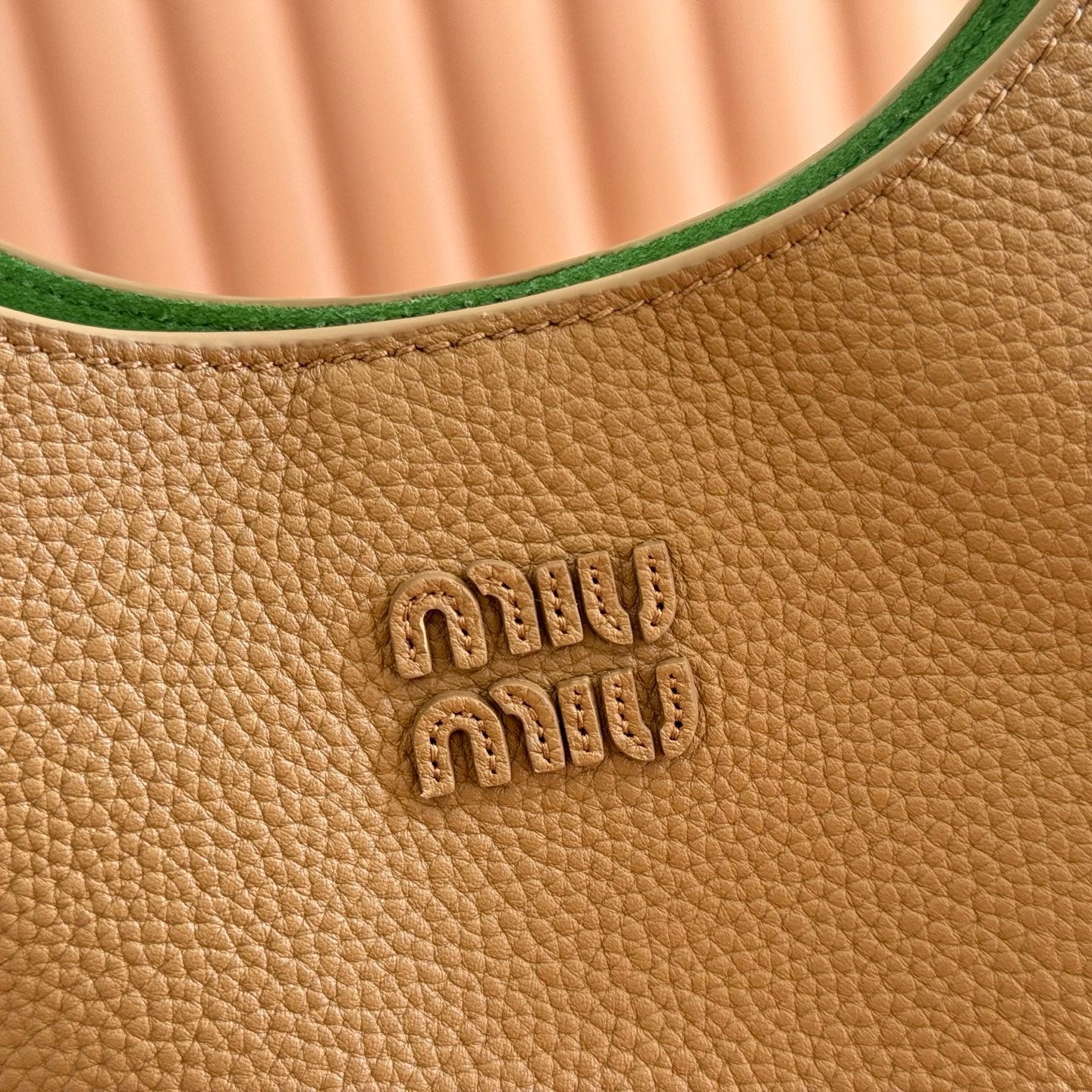 Miu Arcadie Small 19cm Bowling Handbag Camel Cowhide 280990
