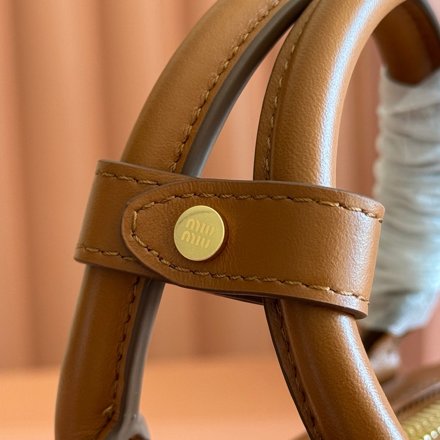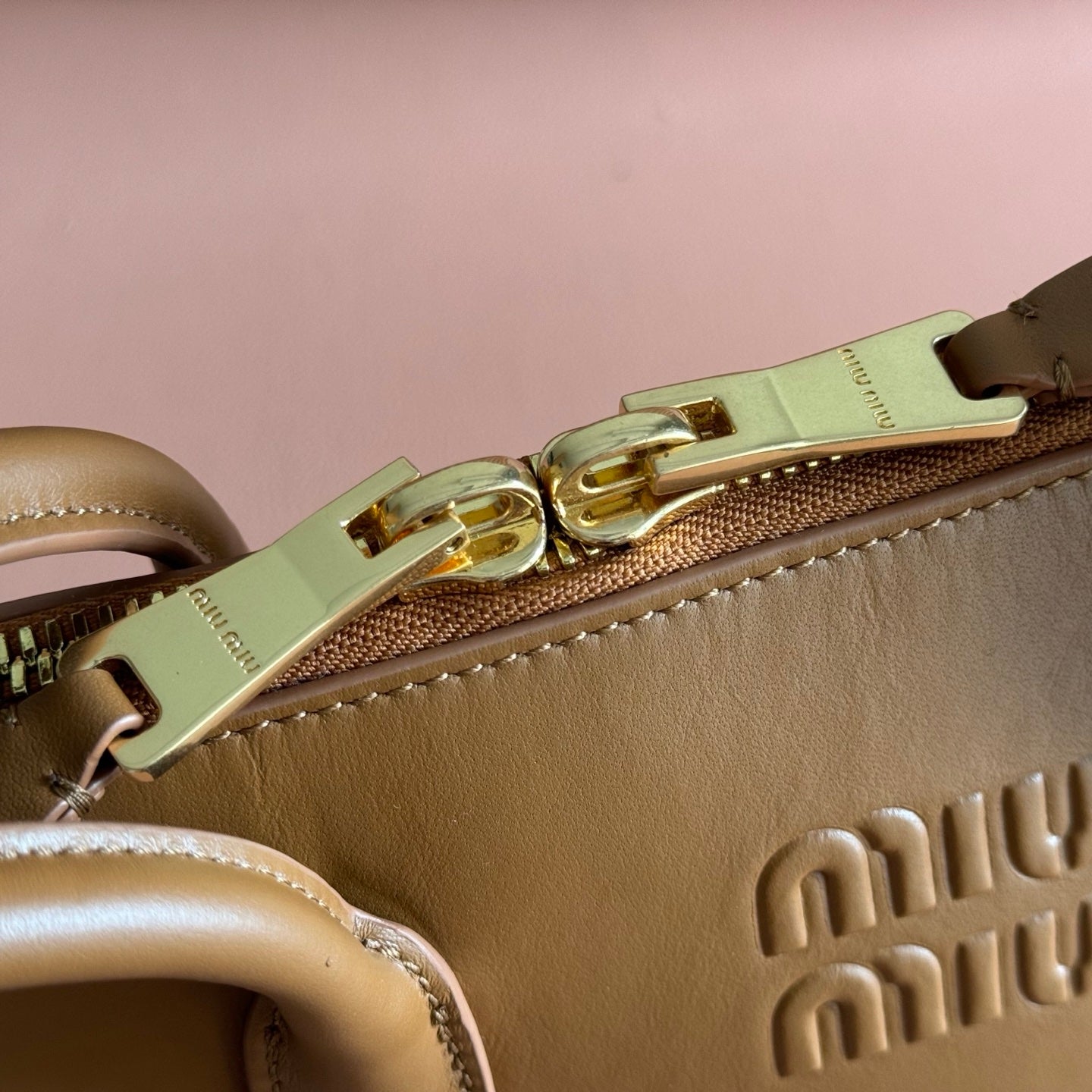 Miu Caprice Clutch Camel Leather 280752