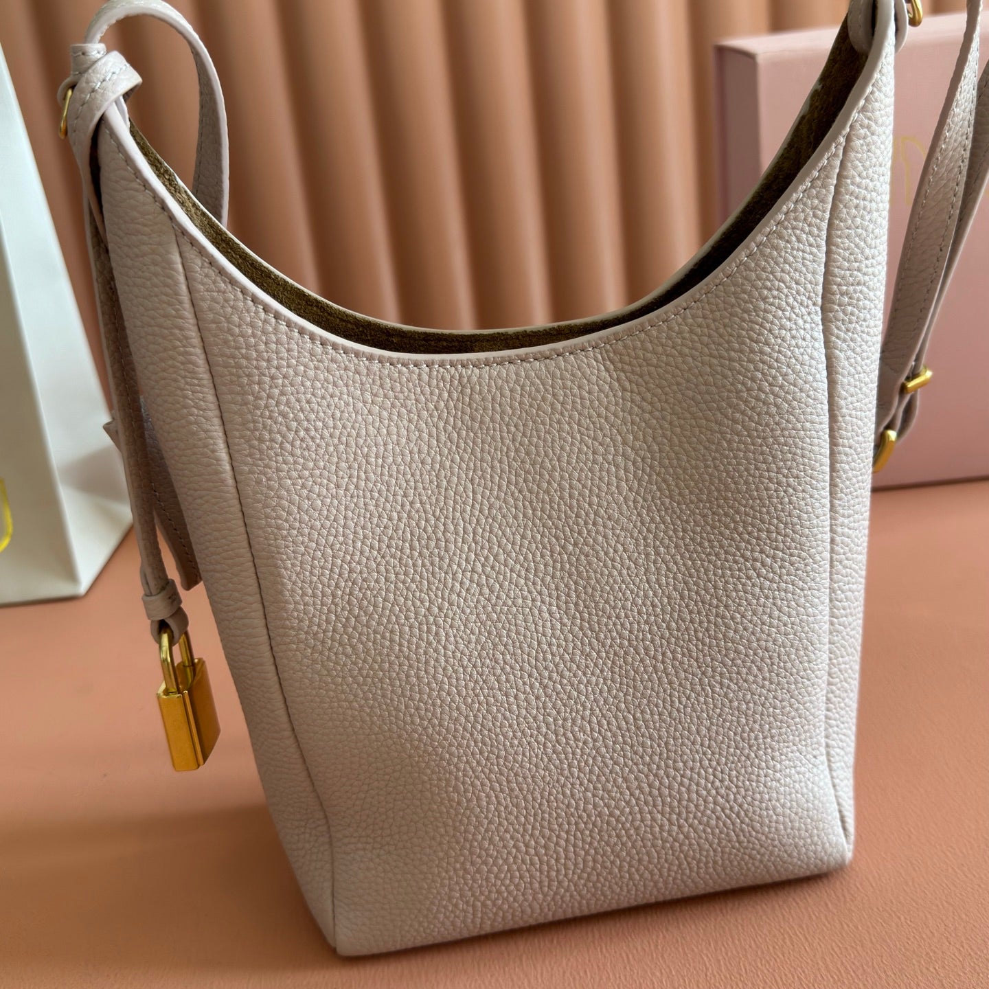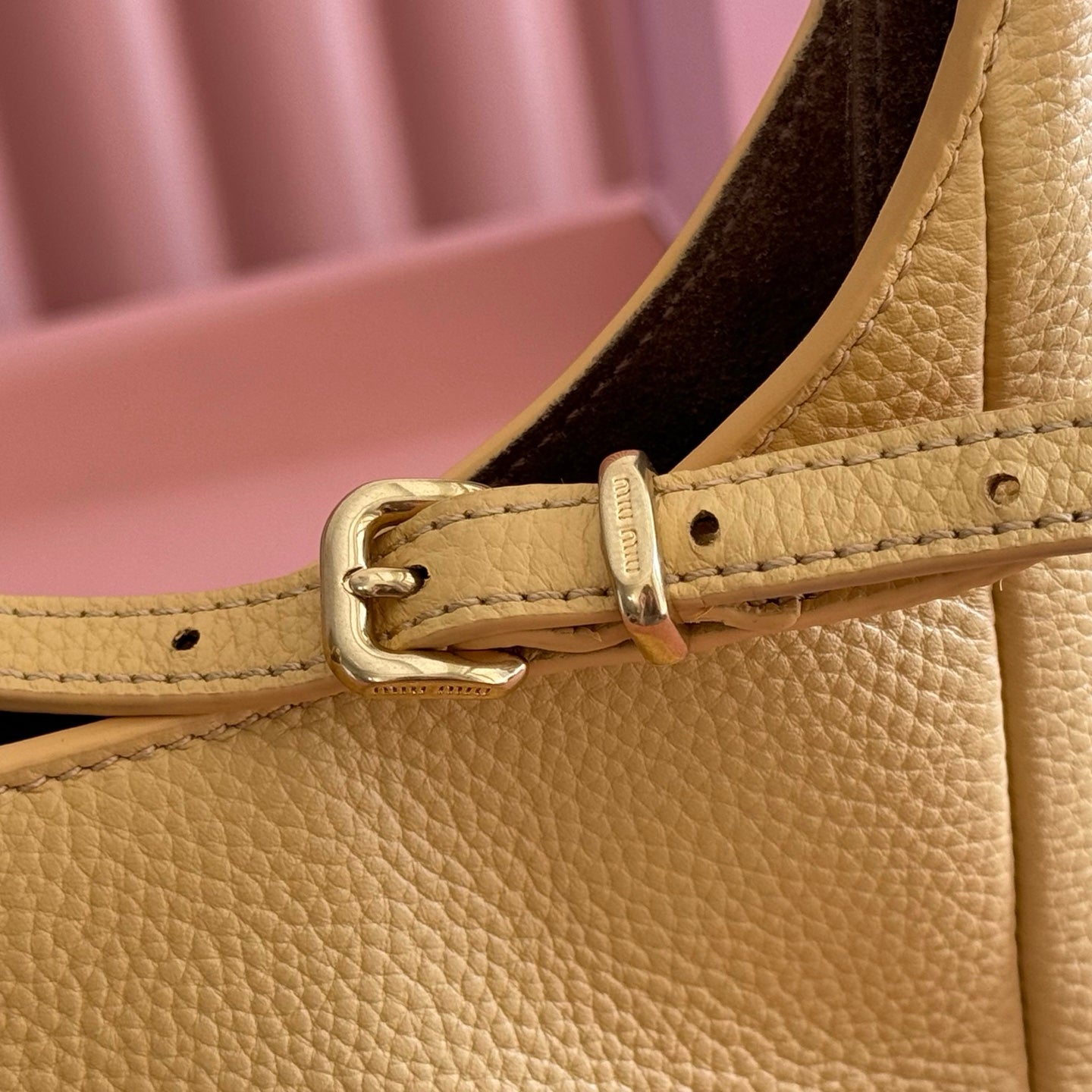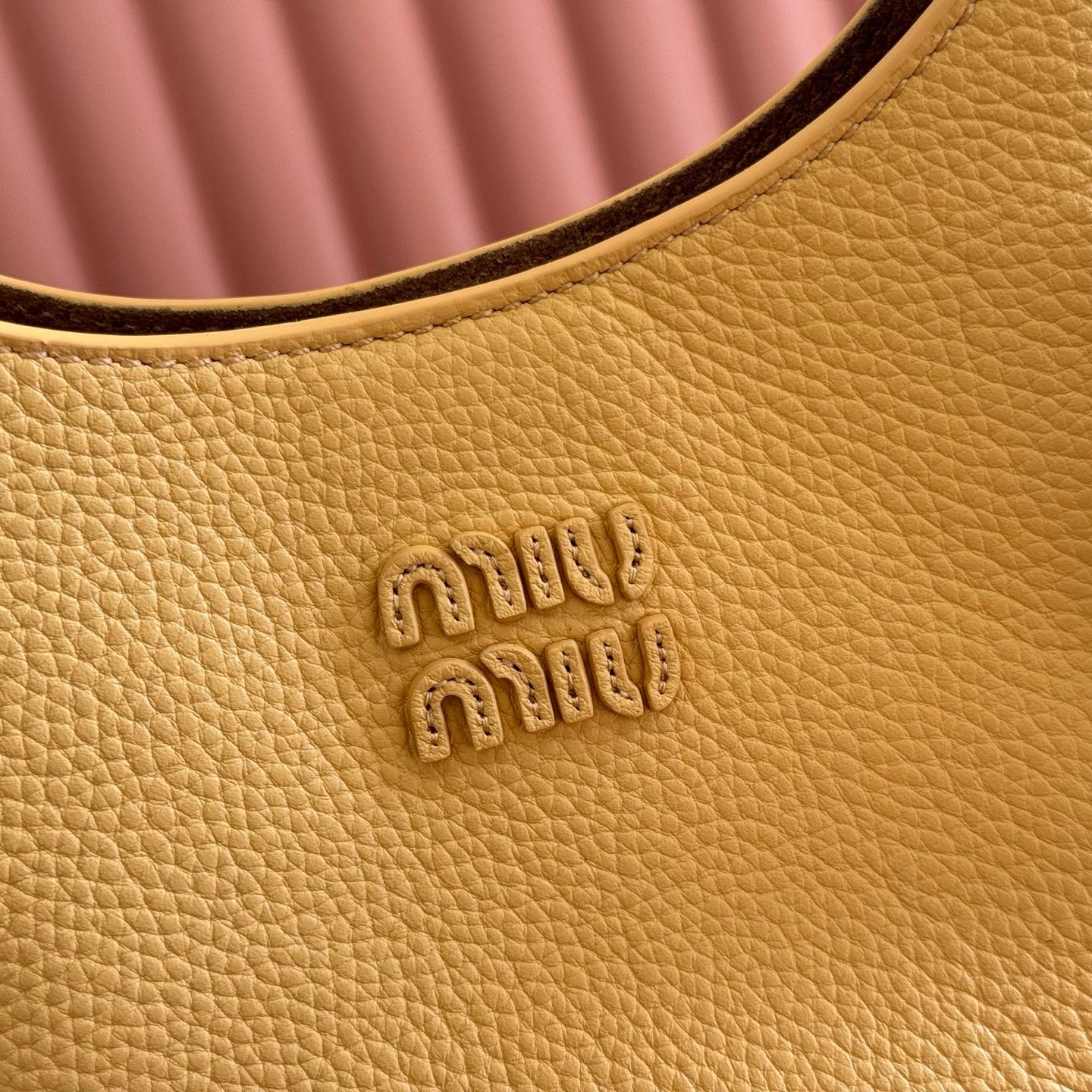 Miu Leather Bucket Bag 23cm Powder Pink Grain Cowhide