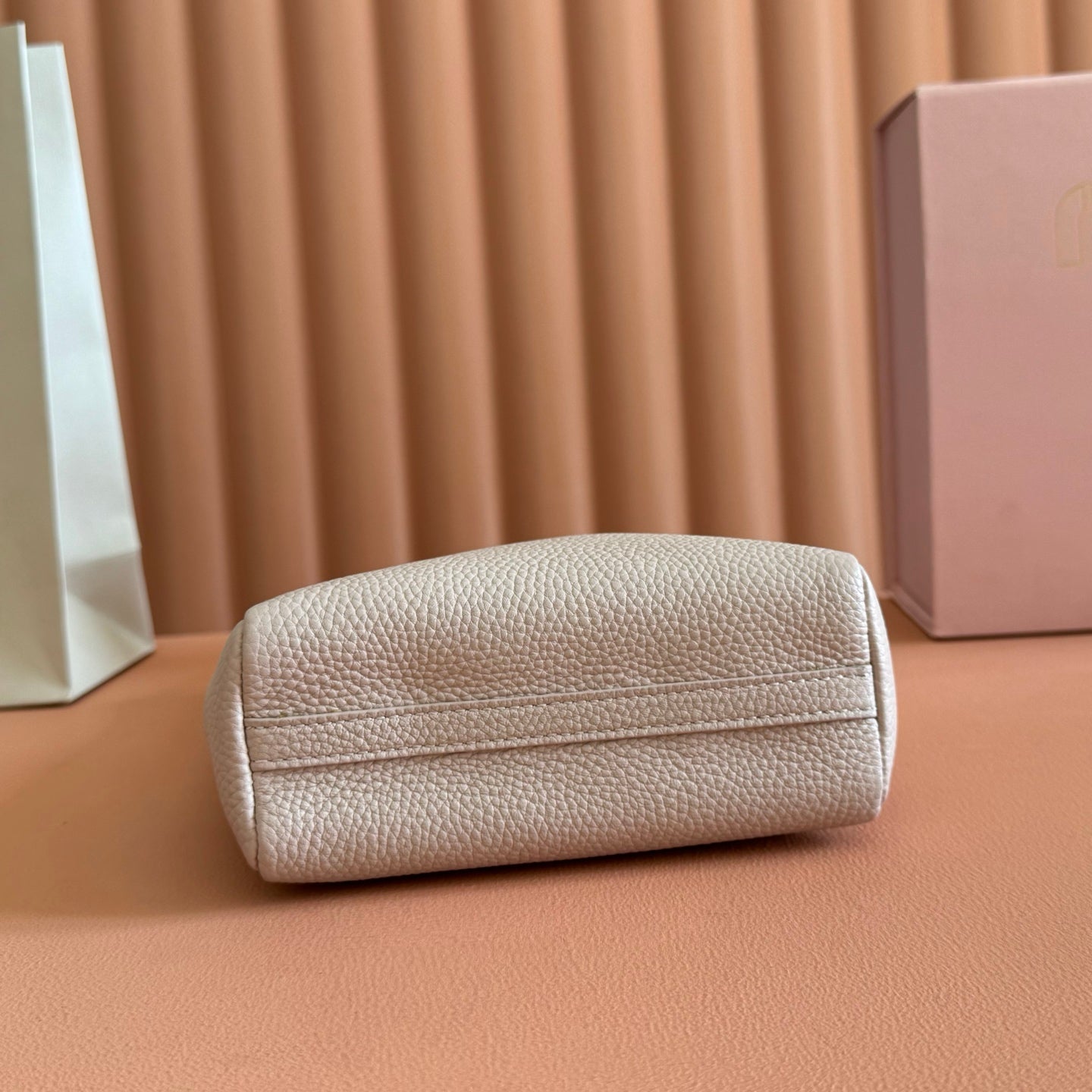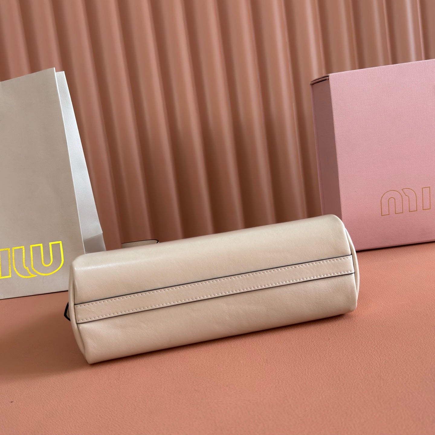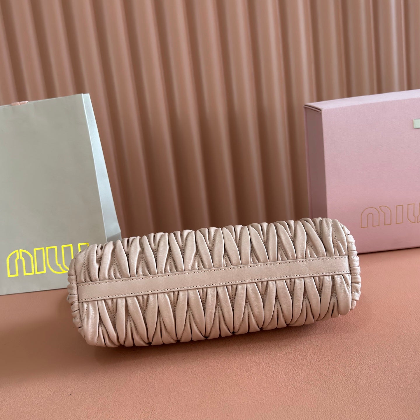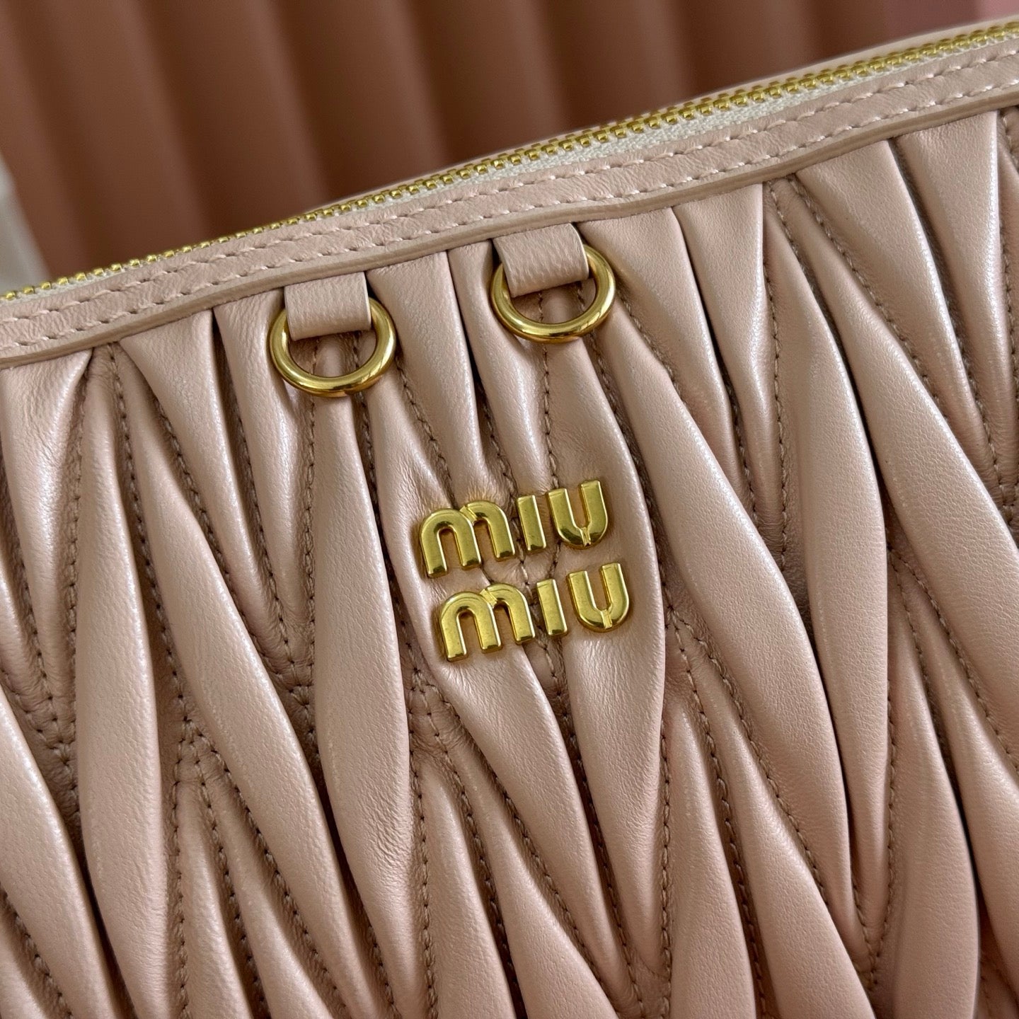 Miu Matelassé Pouch Bag 15cm Light Brown Leather